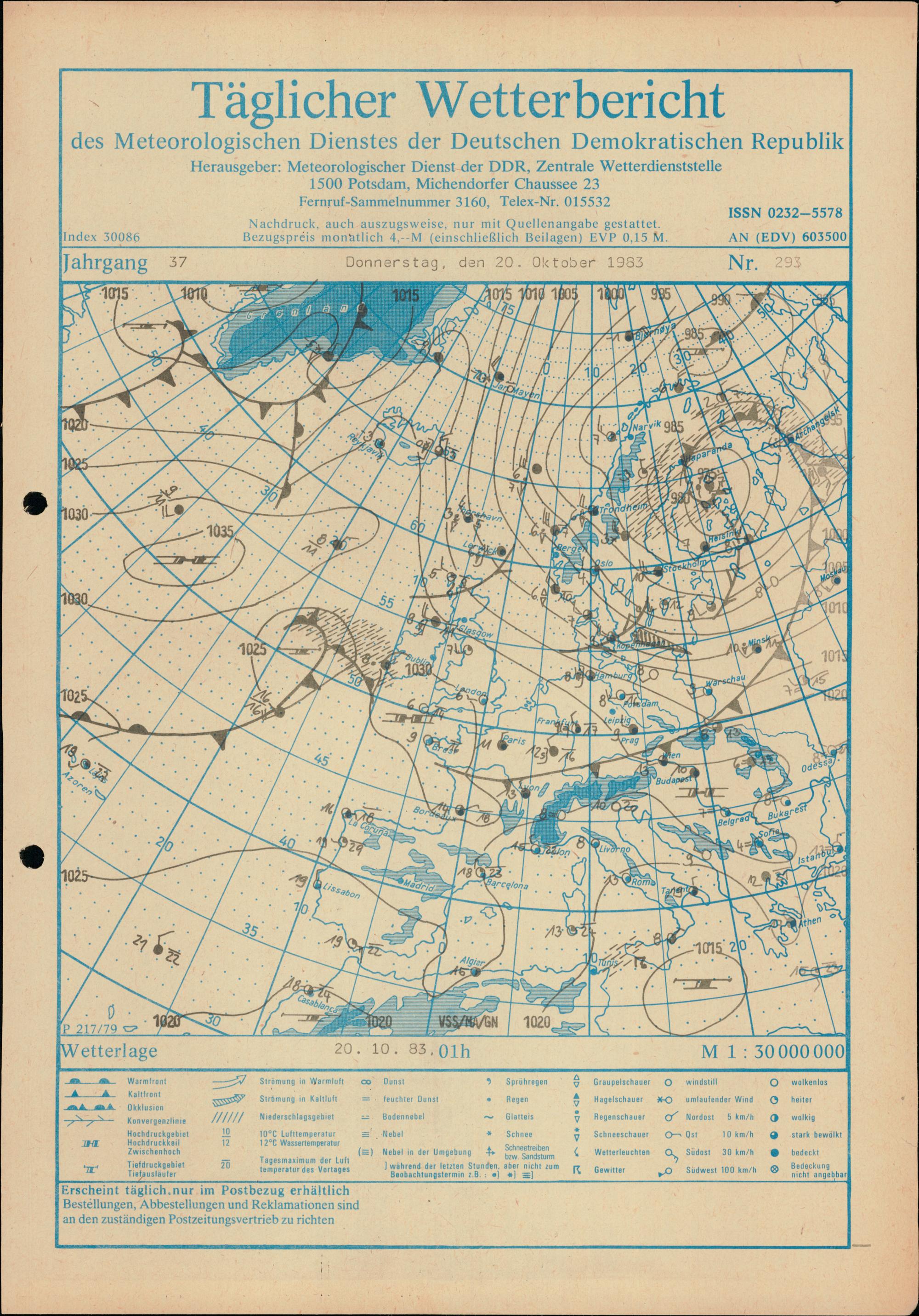 Täglicher Wetterbericht des Meteorologischen Dienstes der Deutschen Demokratischen...