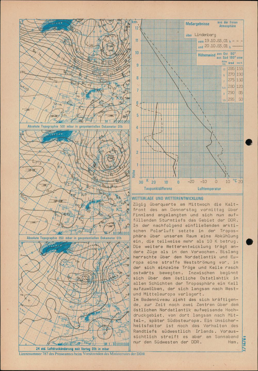 Täglicher Wetterbericht des Meteorologischen Dienstes der Deutschen Demokratischen...
