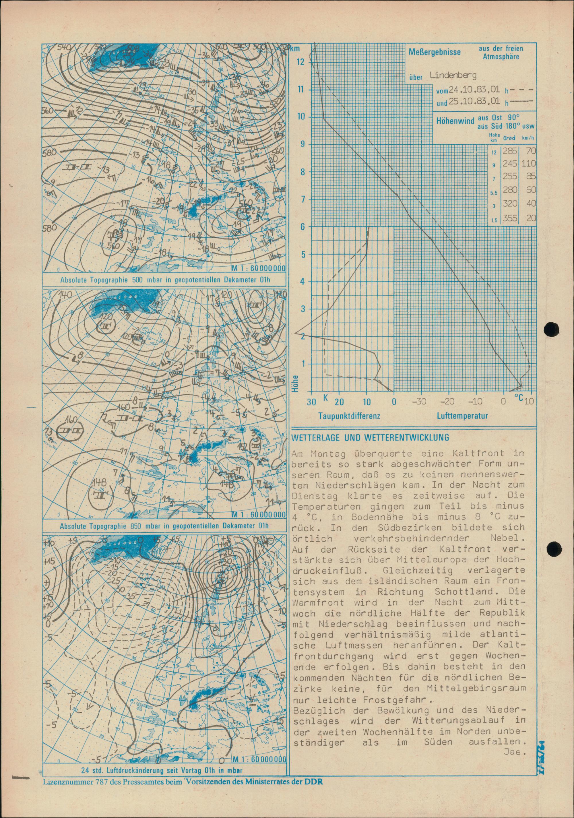 Täglicher Wetterbericht des Meteorologischen Dienstes der Deutschen Demokratischen...