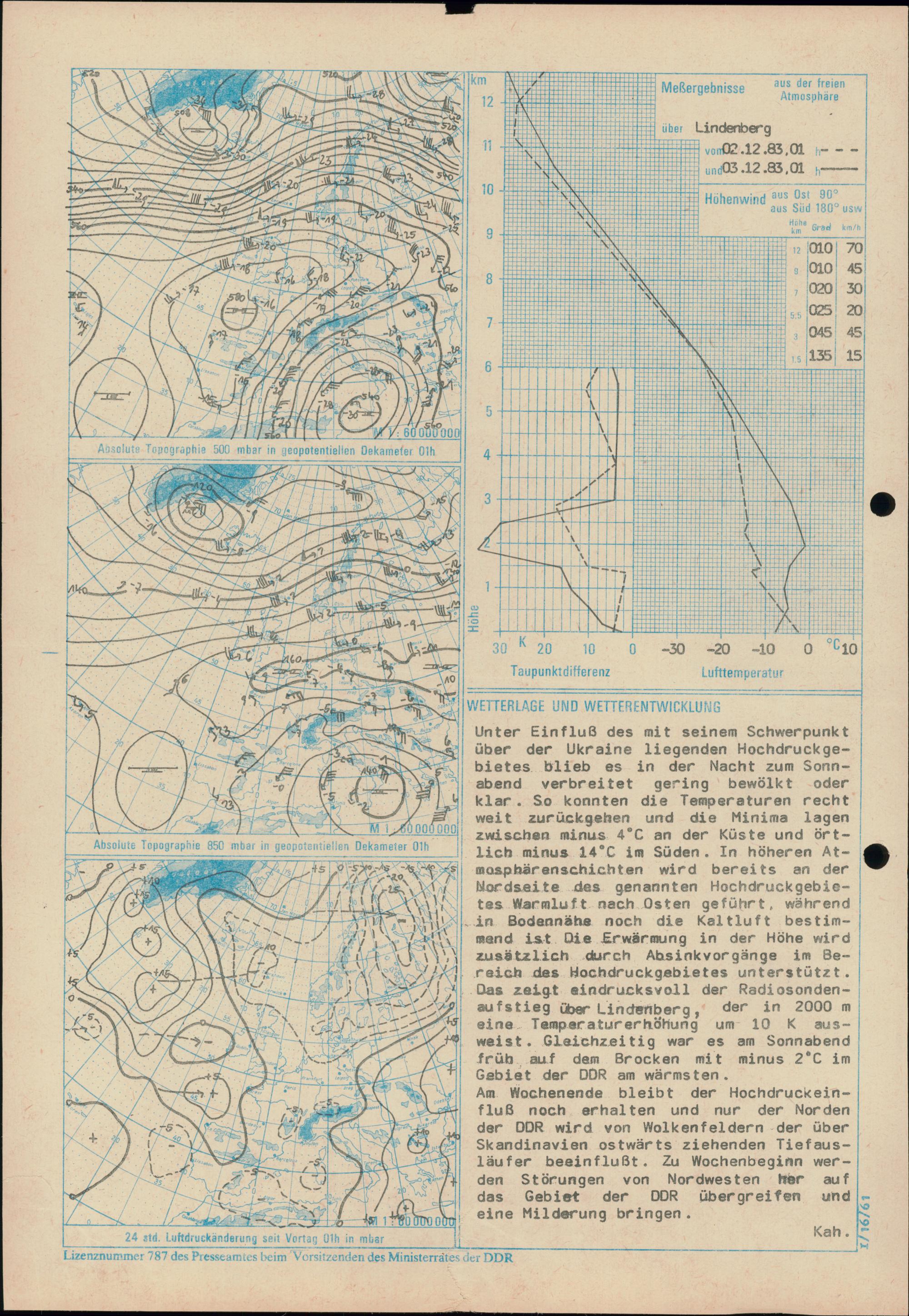 Täglicher Wetterbericht des Meteorologischen Dienstes der Deutschen Demokratischen...