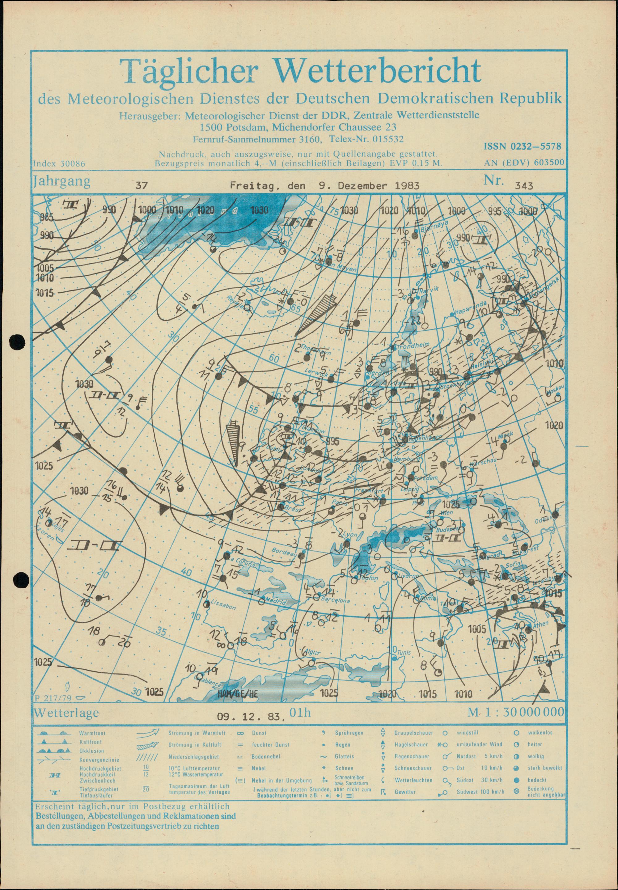 Täglicher Wetterbericht des Meteorologischen Dienstes der Deutschen Demokratischen...