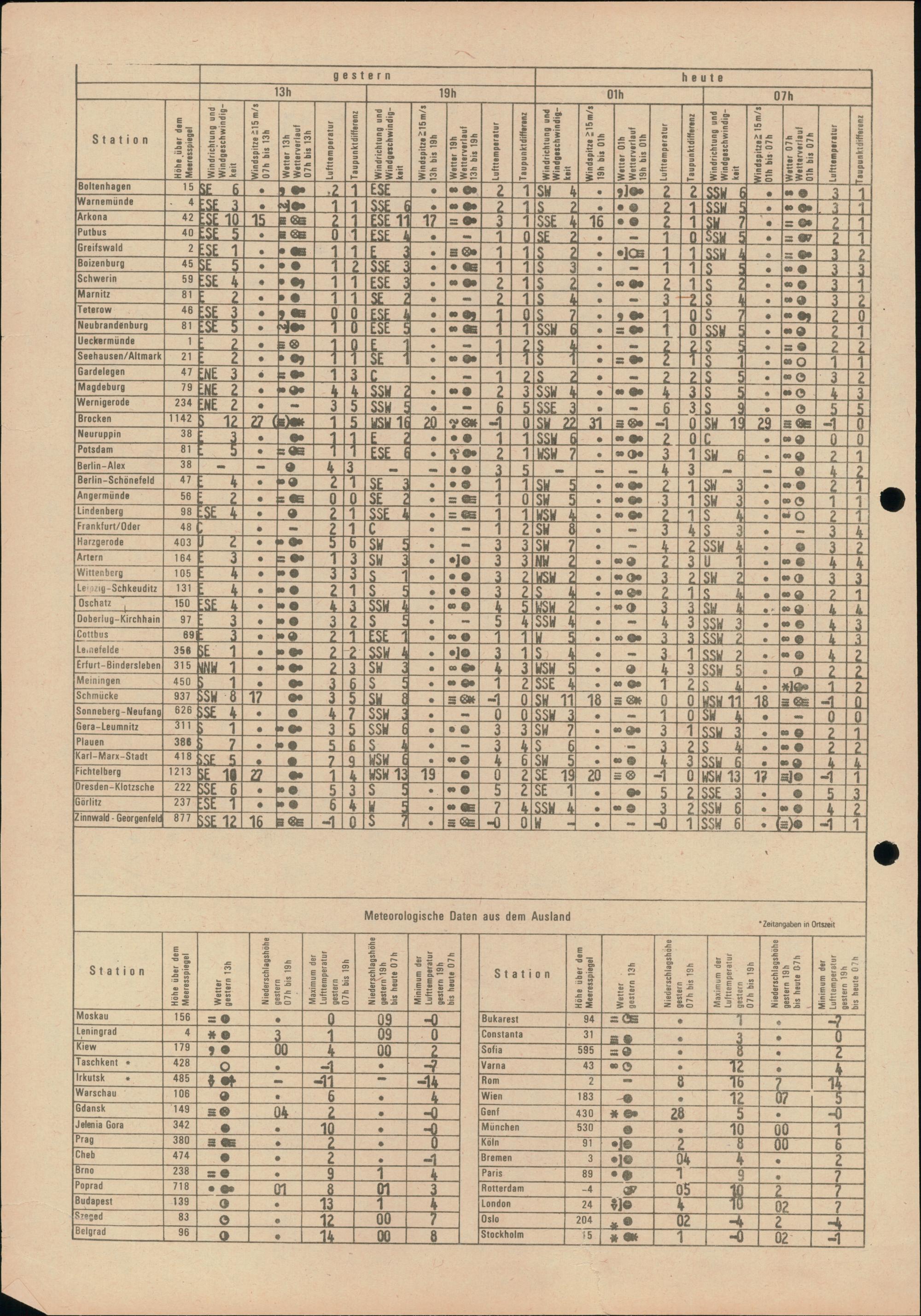 Täglicher Wetterbericht des Meteorologischen Dienstes der Deutschen Demokratischen...