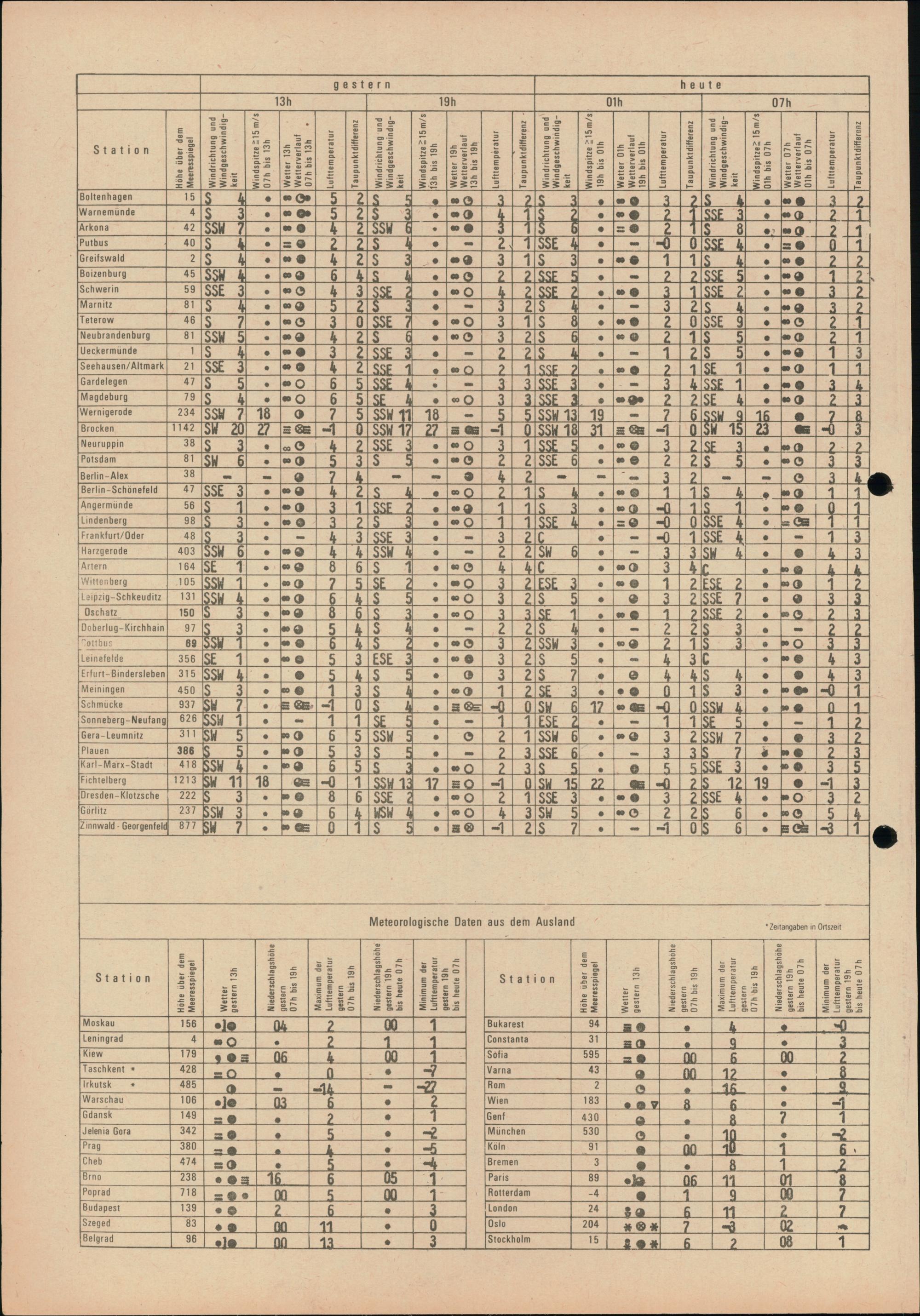 Täglicher Wetterbericht des Meteorologischen Dienstes der Deutschen Demokratischen...