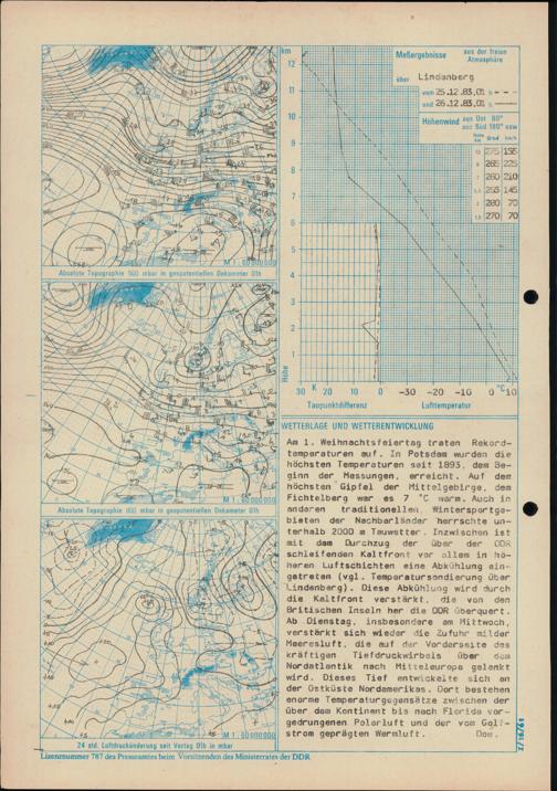 Täglicher Wetterbericht des Meteorologischen Dienstes der Deutschen Demokratischen...