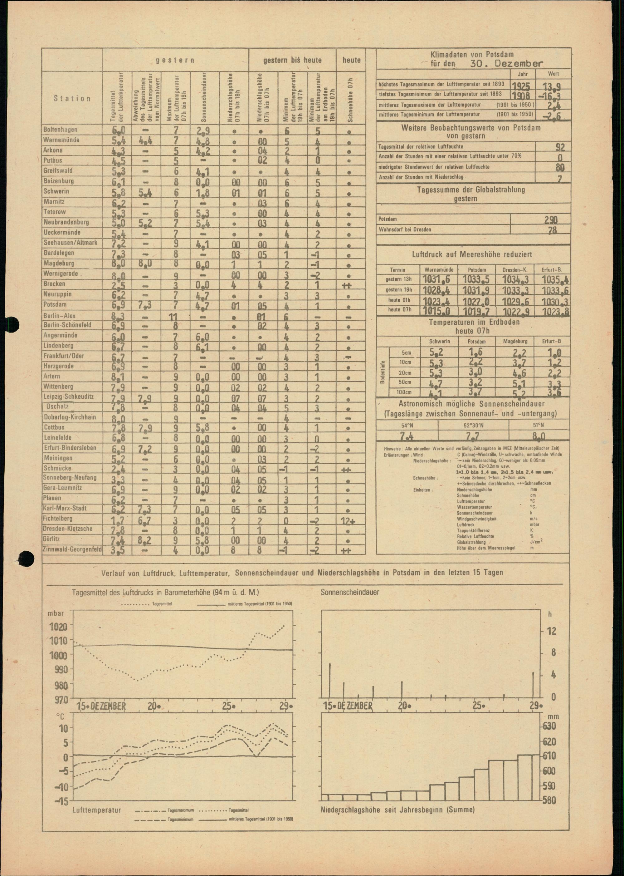 Täglicher Wetterbericht des Meteorologischen Dienstes der Deutschen Demokratischen...