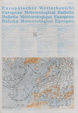 Europäischer Wetterbericht : Amtsblatt d. Deutschen Wetterdienstes = European meteorological bulletin = Bulletin météorologique européen. Offenbach, M. : Dt. Wetterdienst, 1.1976 - 26.2001, 1976-2001 : Jg. 16 (24.2.1991) Karten. / CC-BY-Lizenz (4.0)