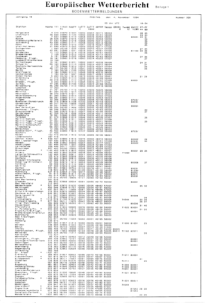 Europäischer Wetterbericht : Amtsblatt d. Deutschen Wetterdienstes = European meteorological bulletin = Bulletin météorologique européen. Offenbach, M. : Dt. Wetterdienst, 1.1976 - 26.2001, 1976-2001 : Jg. 19 (4.11.1994) Daten. / CC-BY-Lizenz (4.0)
