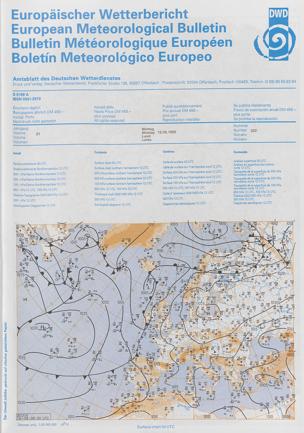Europäischer Wetterbericht : Amtsblatt d. Deutschen Wetterdienstes = European meteorological bulletin = Bulletin météorologique européen. Offenbach, M. : Dt. Wetterdienst, 1.1976 - 26.2001, 1976-2001 : Jg. 21 (19.8.1996) H. August. Karten. / CC-BY-Lizenz (4.0)