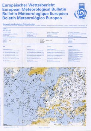 Europäischer Wetterbericht : Amtsblatt d. Deutschen Wetterdienstes = European meteorological bulletin = Bulletin météorologique européen. Offenbach, M. : Dt. Wetterdienst, 1.1976 - 26.2001, 1976-2001 : Jg. 23 (10.5.1998) H. Mai. Karten. / CC-BY-Lizenz (4.0)