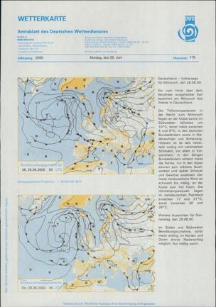 Wetterkarte : Amtsblatt d. Deutschen Wetterdienstes. Offenbach, M. : Dt. Wetterdienst, Zentralamt, 1990 - 2001,1(1.Jan.), 1990-2001 : (26.6.2000) H. Juni. / CC-BY-Lizenz (4.0)