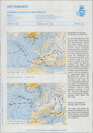 Wetterkarte : Amtsblatt d. Deutschen Wetterdienstes. Offenbach, M. : Dt. Wetterdienst, Zentralamt, 1990 - 2001,1(1.Jan.), 1990-2001 : (7.3.1998) H. März. / CC-BY-Lizenz (4.0)