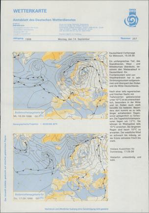 Wetterkarte : Amtsblatt d. Deutschen Wetterdienstes. Offenbach, M. : Dt. Wetterdienst, Zentralamt, 1990 - 2001,1(1.Jan.), 1990-2001 : (14.9.1998) H. September. / CC-BY-Lizenz (4.0)