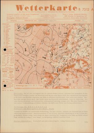Wetterkarte des Deutschen Wetterdienstes. München : Wetteramt, Nachgewiesen 7.1956,107 - 23.1972, 1956-1972 : Jg. 22 (11.8.1971) H. August. / CC-BY-Lizenz (4.0)