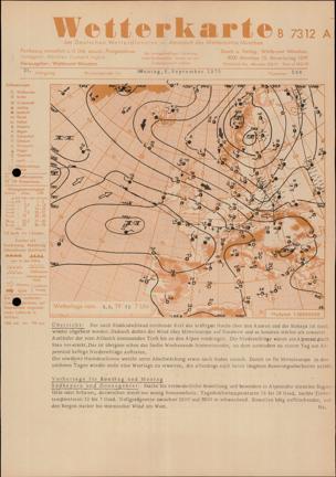 Wetterkarte des Deutschen Wetterdienstes. München : Wetteramt, Nachgewiesen 7.1956,107 - 23.1972, 1956-1972 : Jg. 21 (6.9.1070) H. September. / CC-BY-Lizenz (4.0)