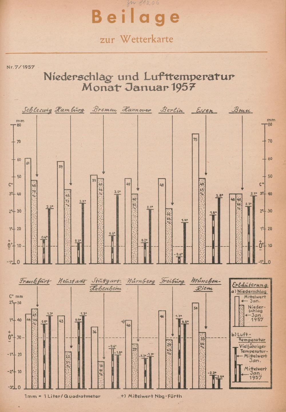 7. Niederschlag und Lufttemperatur Monat Januar 1957