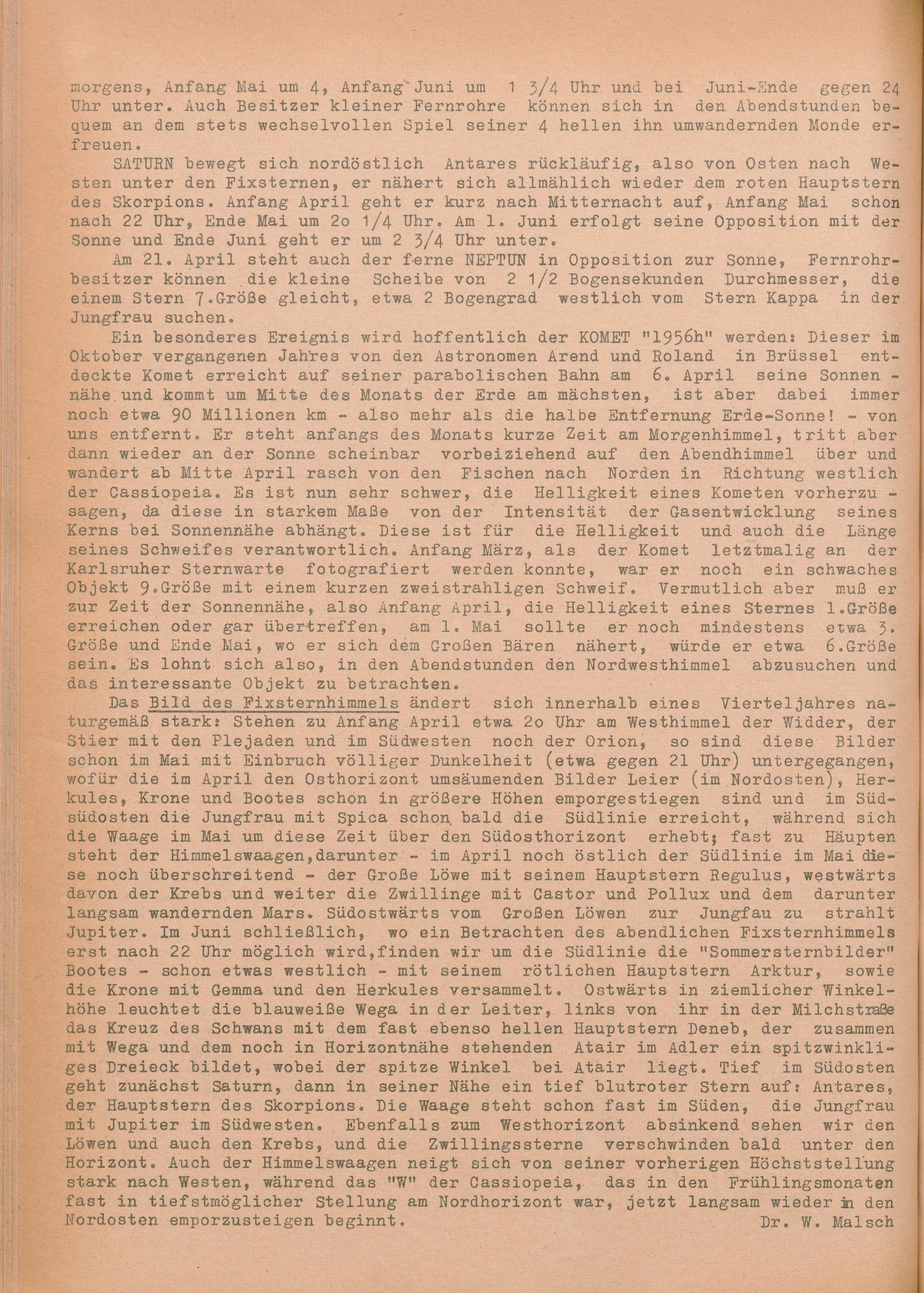 13. Vom Sternenhimmel im April, Mai und Juni 1957
