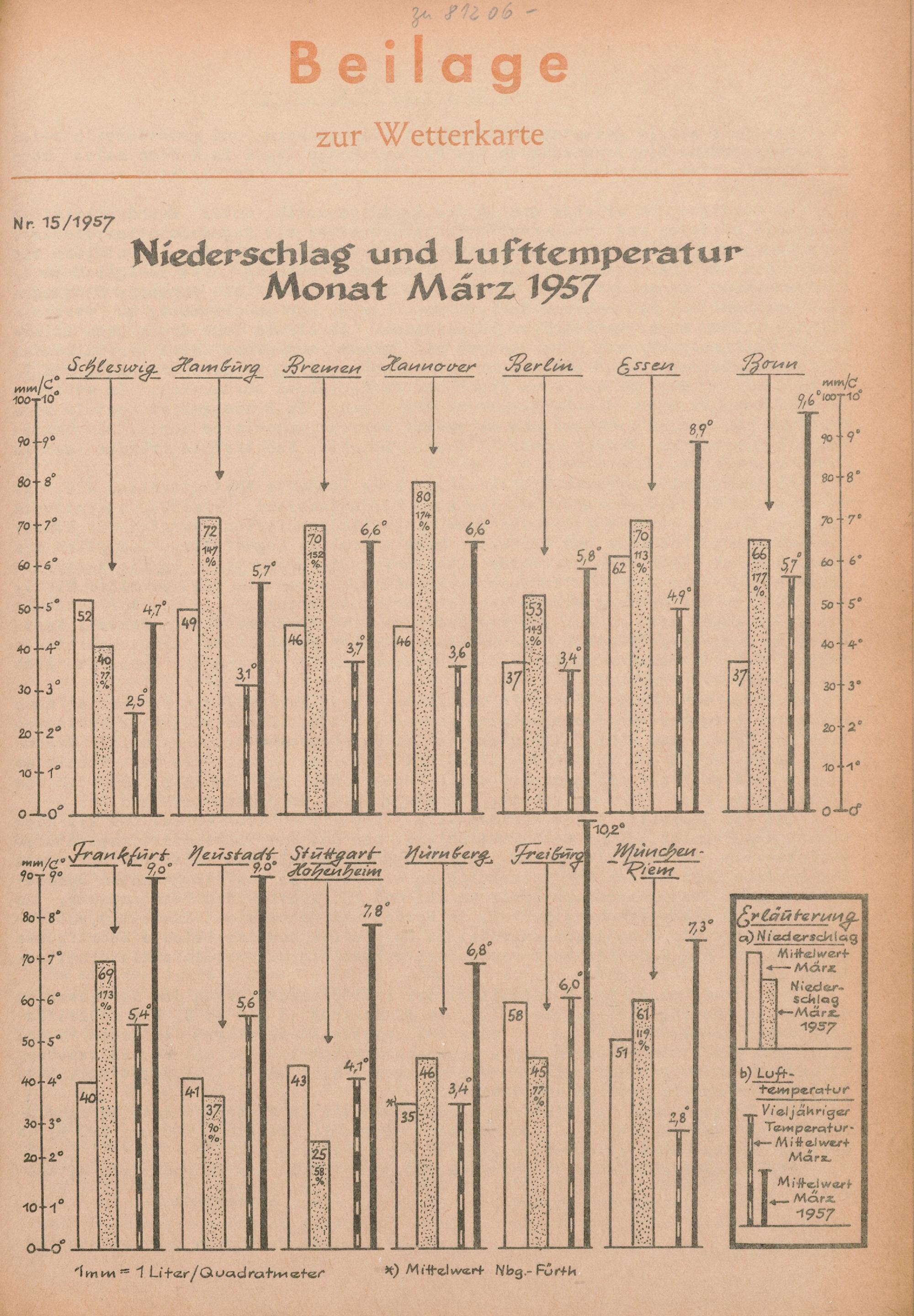 15. Niederschlag und Lufttemperatur Monat März 1957
