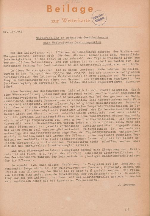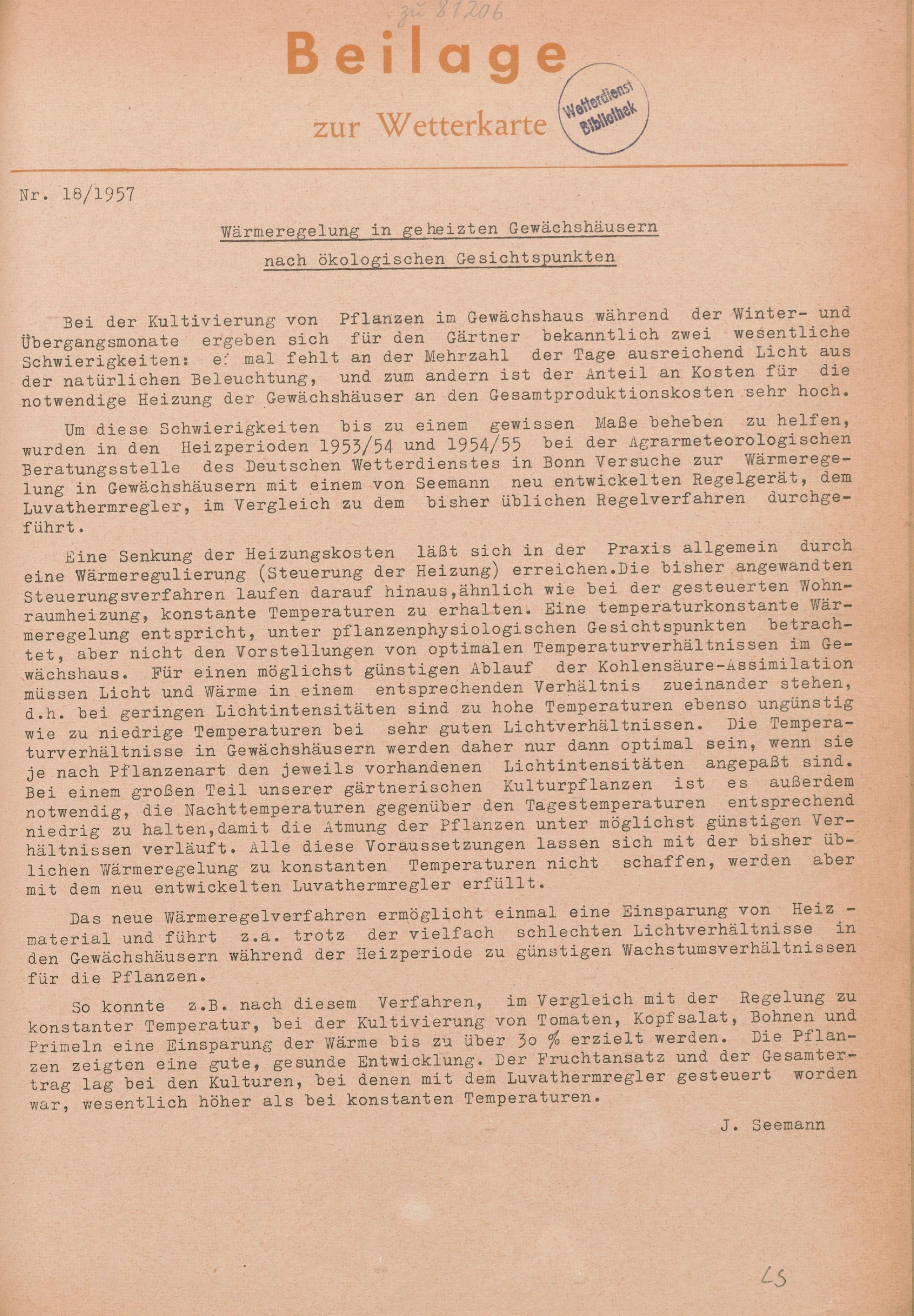 18. Wärmeregelung in geheizten Gewächshäusern nach ökologischen Gesichtspunkten