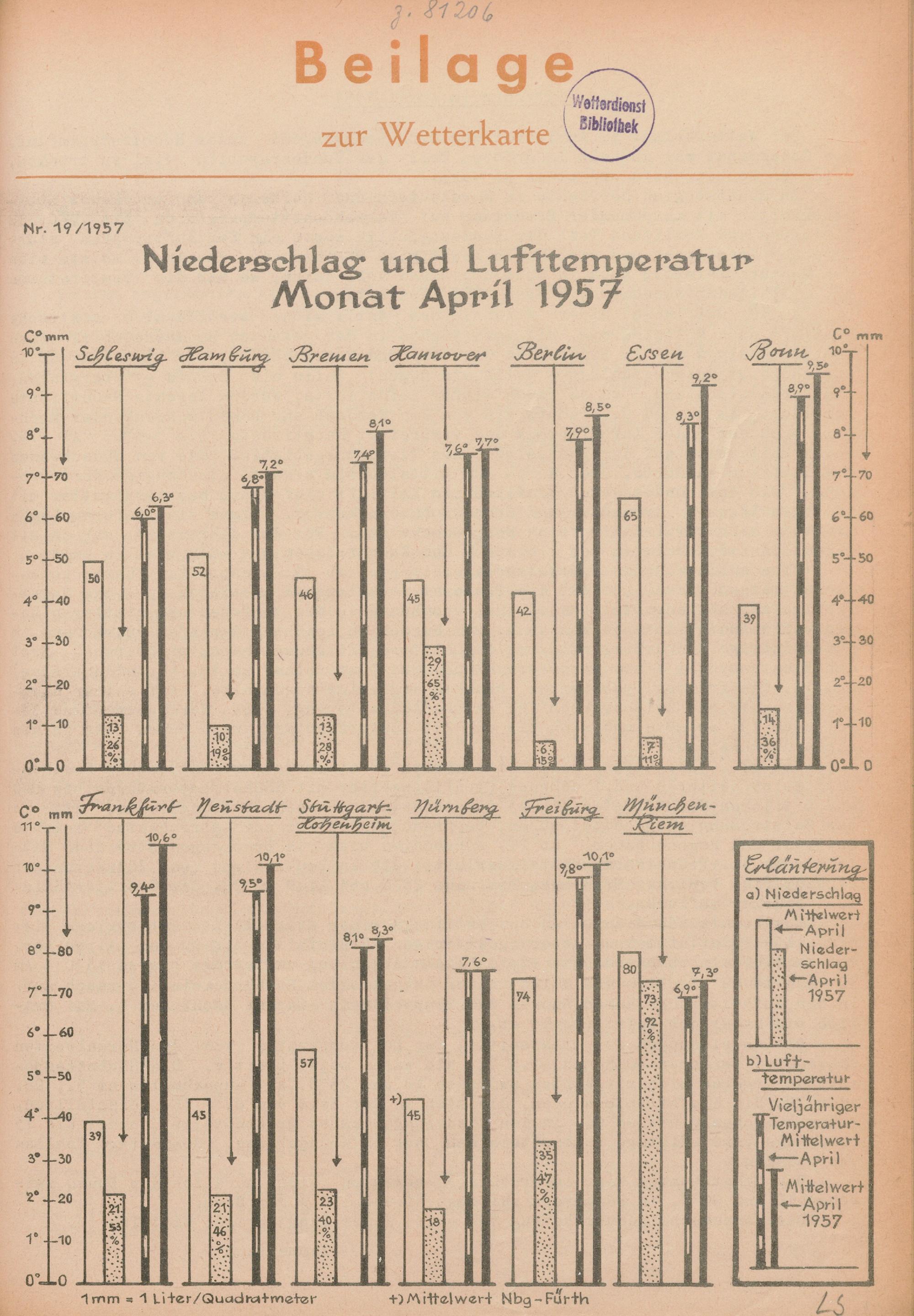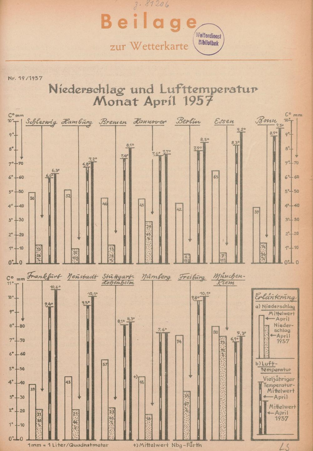 19. Niederschlag und Lufttemperatur Monat April 1957
