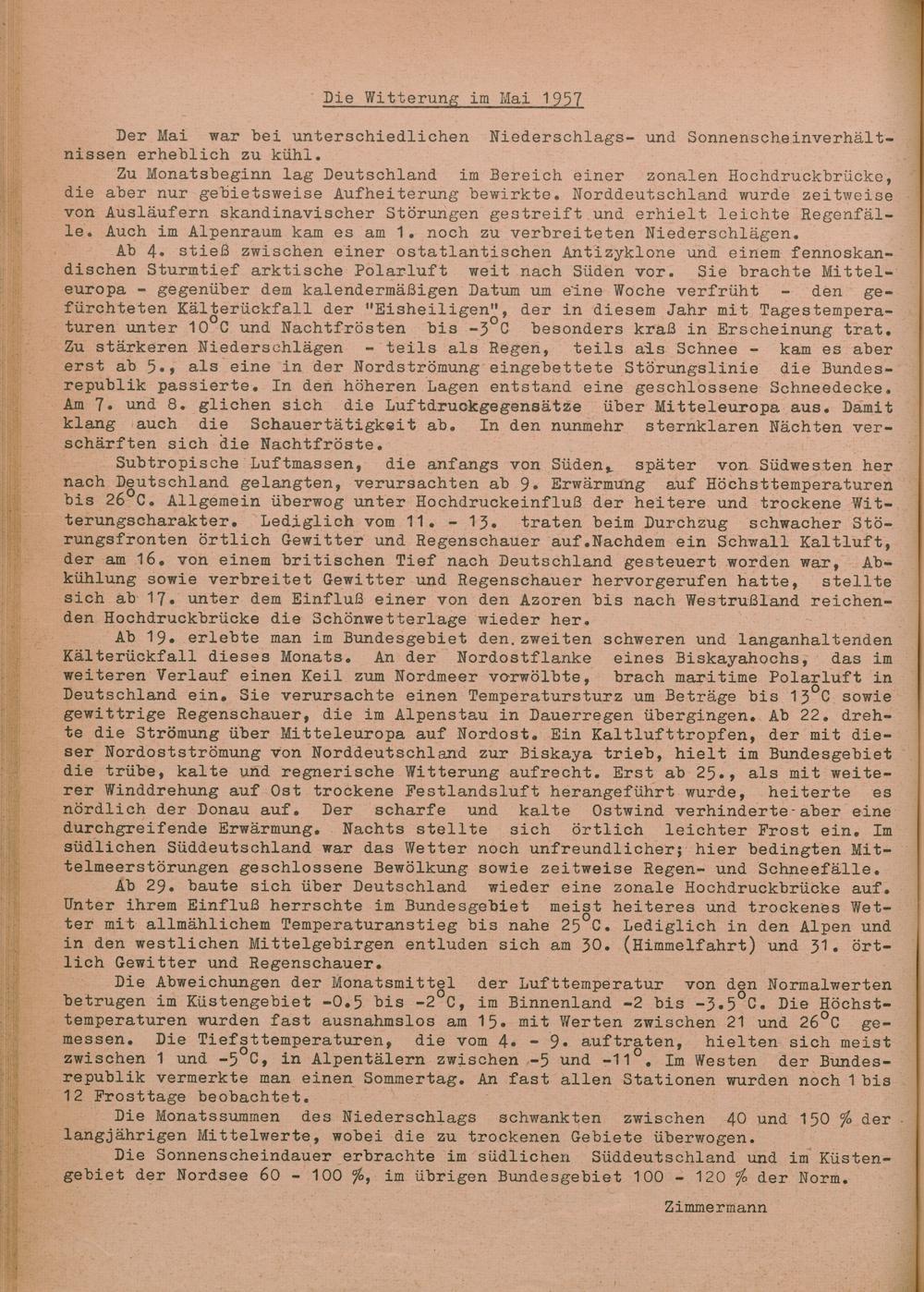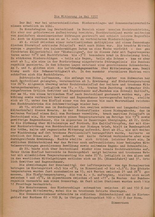 24. Niederschlag und Lufttemperatur Monat Mai 1957