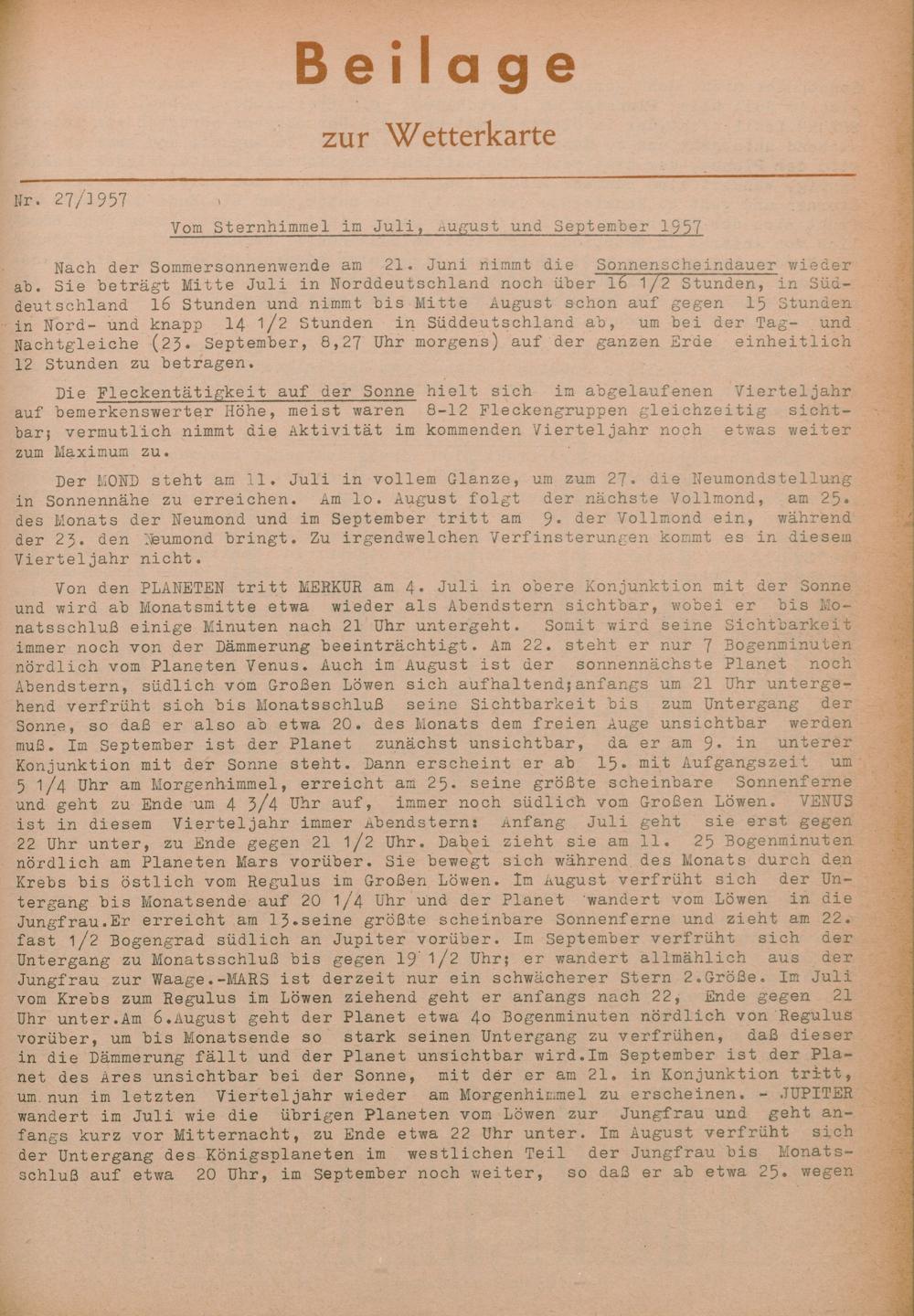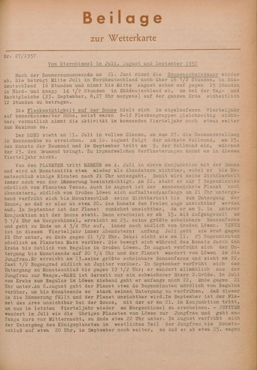 27. Vom Sternenhimmel im Juli, August und September 1957