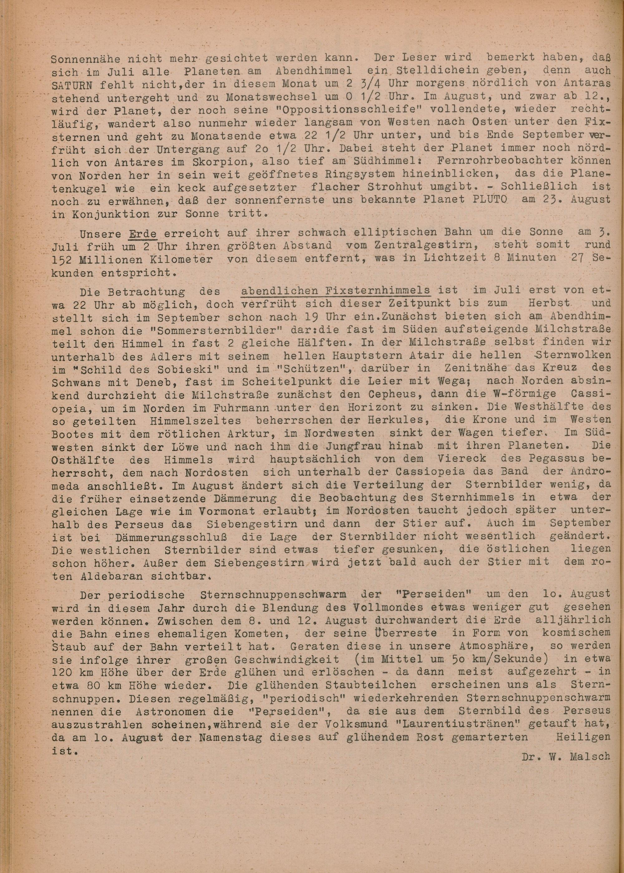 27. Vom Sternenhimmel im Juli, August und September 1957