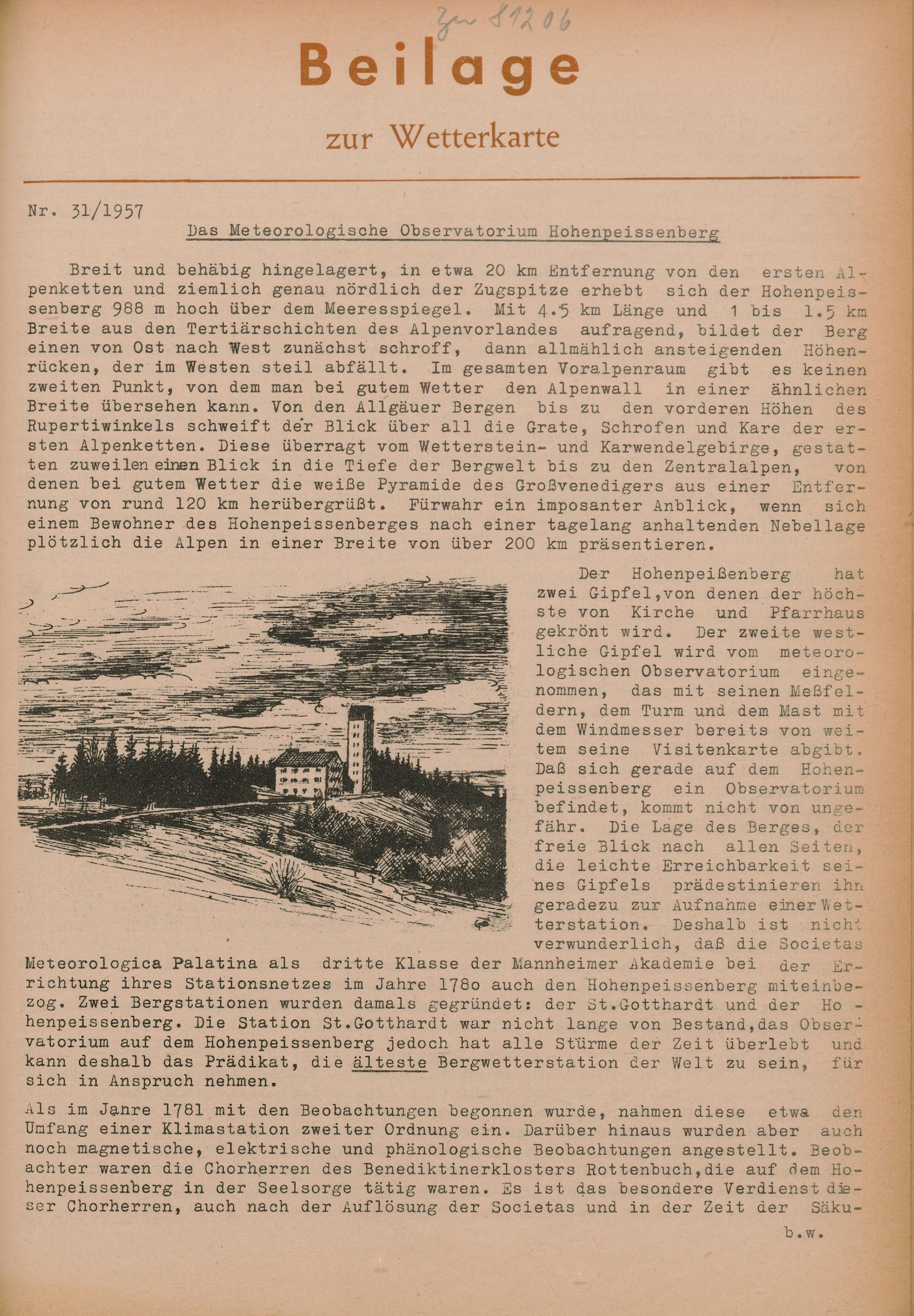 31. Das Meteorologische Observatorium Hohenpeissenberg