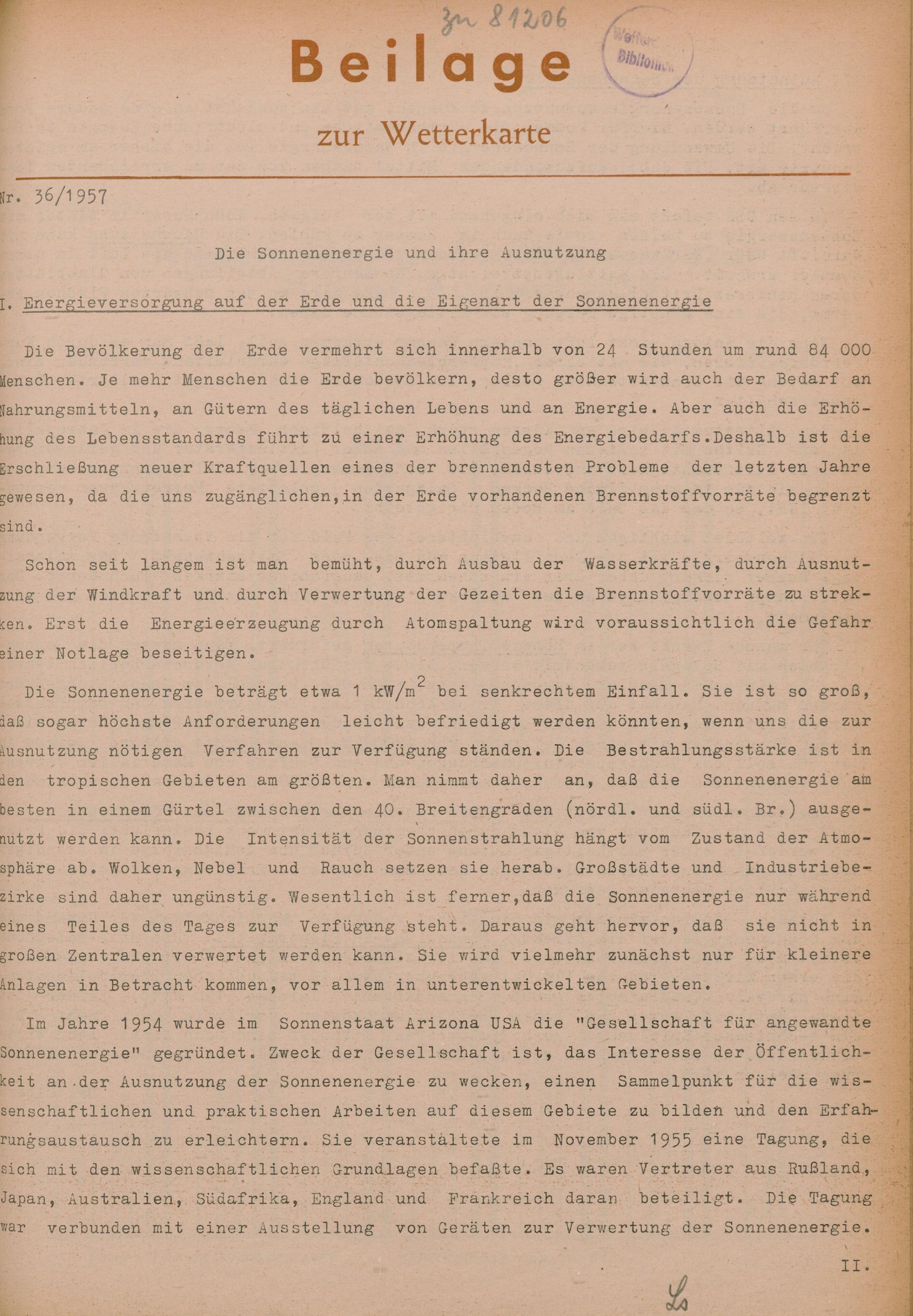 36. Die Sonnenenergie und ihre Ausnutzung