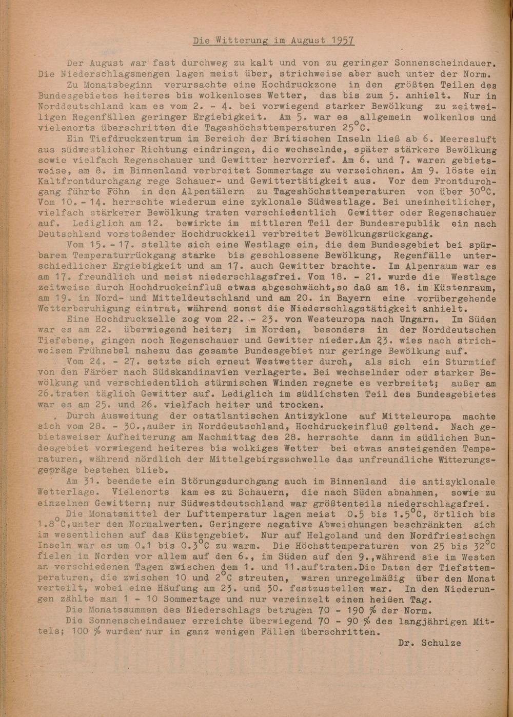 37. Niederschlag und Lufttemperatur Monat August 1957