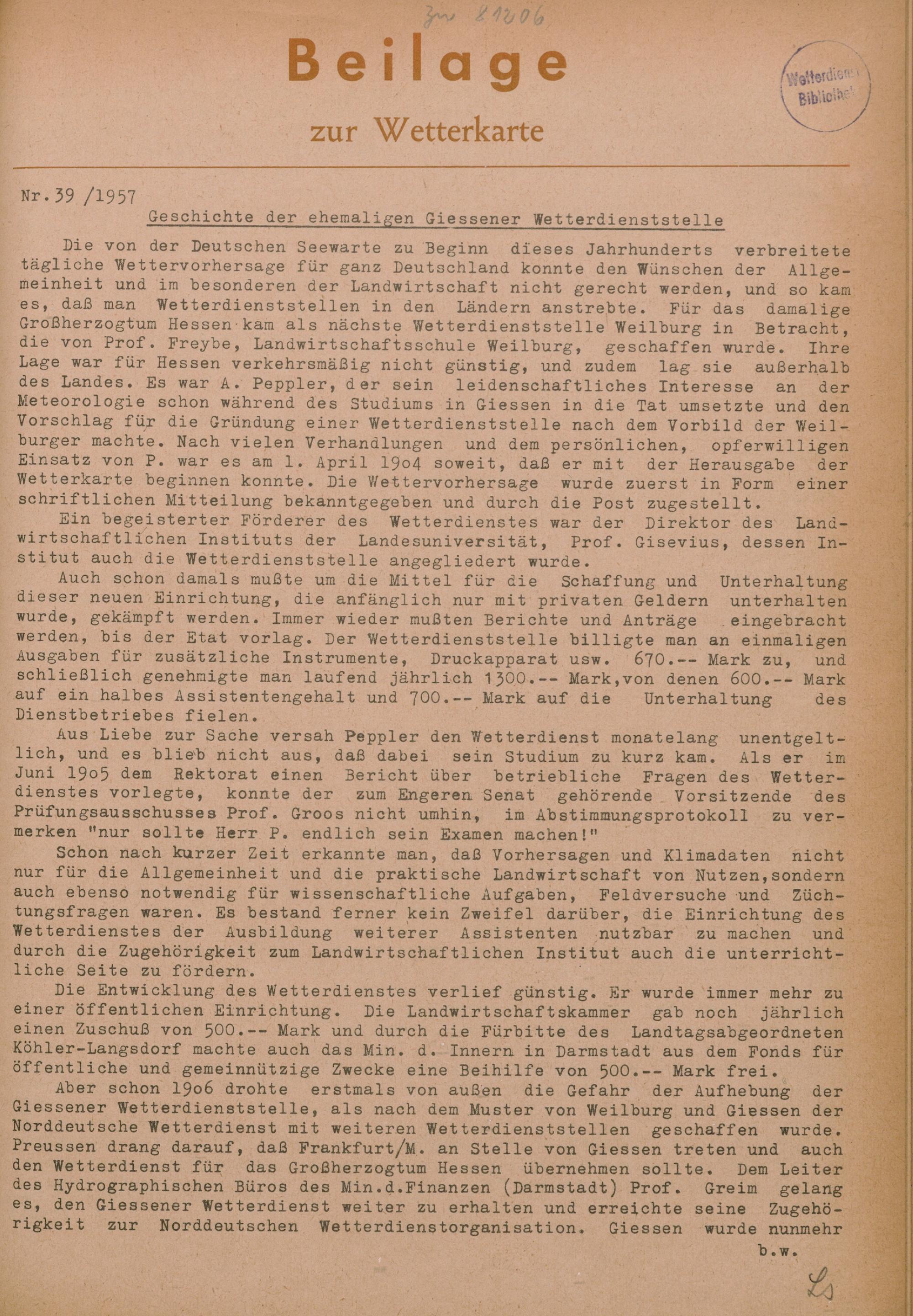39. Geschichte der ehemaligen Giessener Wetterdienststelle