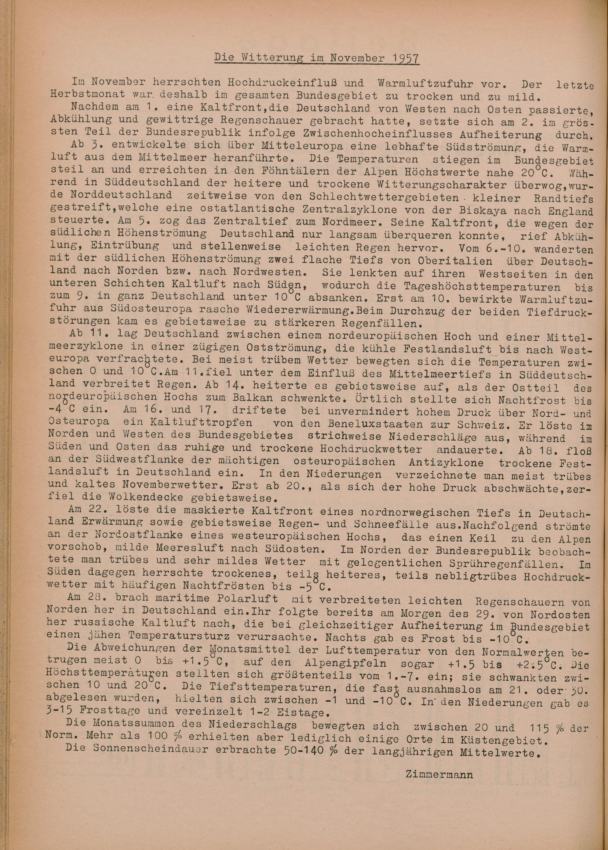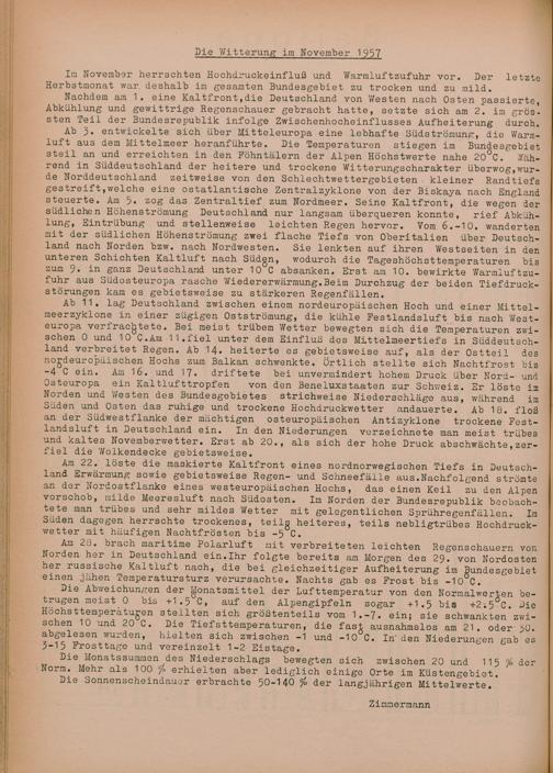 48. Niederschlag und Lufttemperatur Monat November 1957
