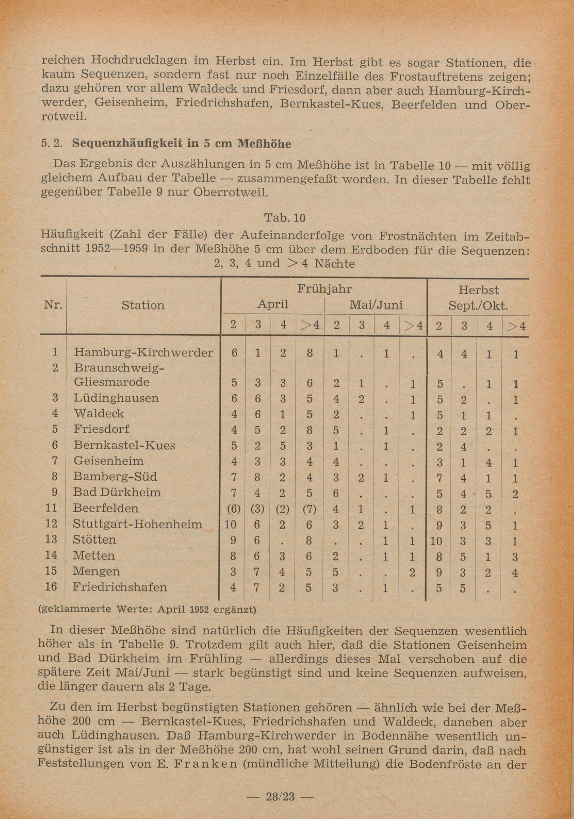 5. Häufigkeit der Aufeinanderfolge (Sequenz) von Frostnächten