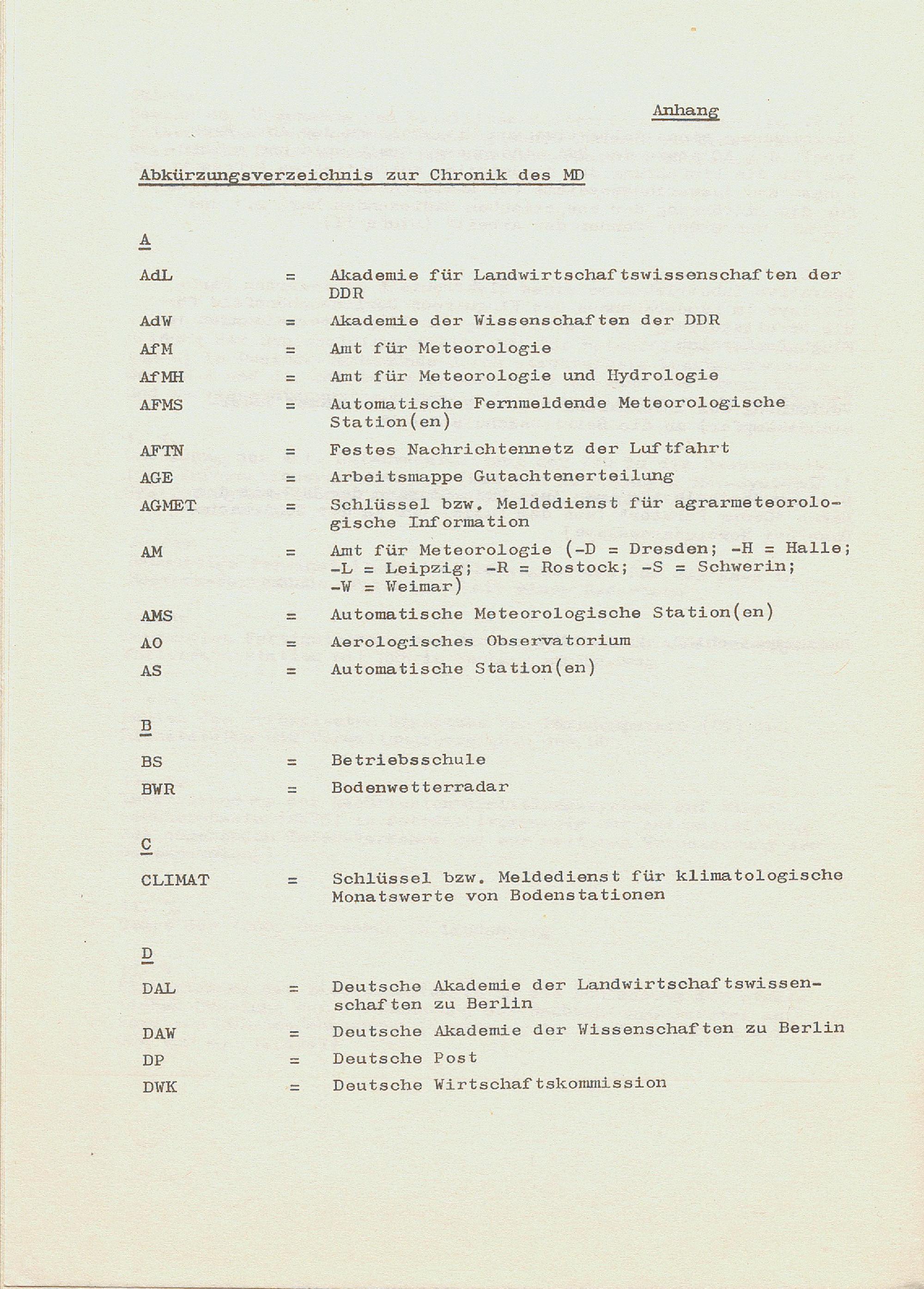 Abkürzungsverzeichnis zur Chronik des MD