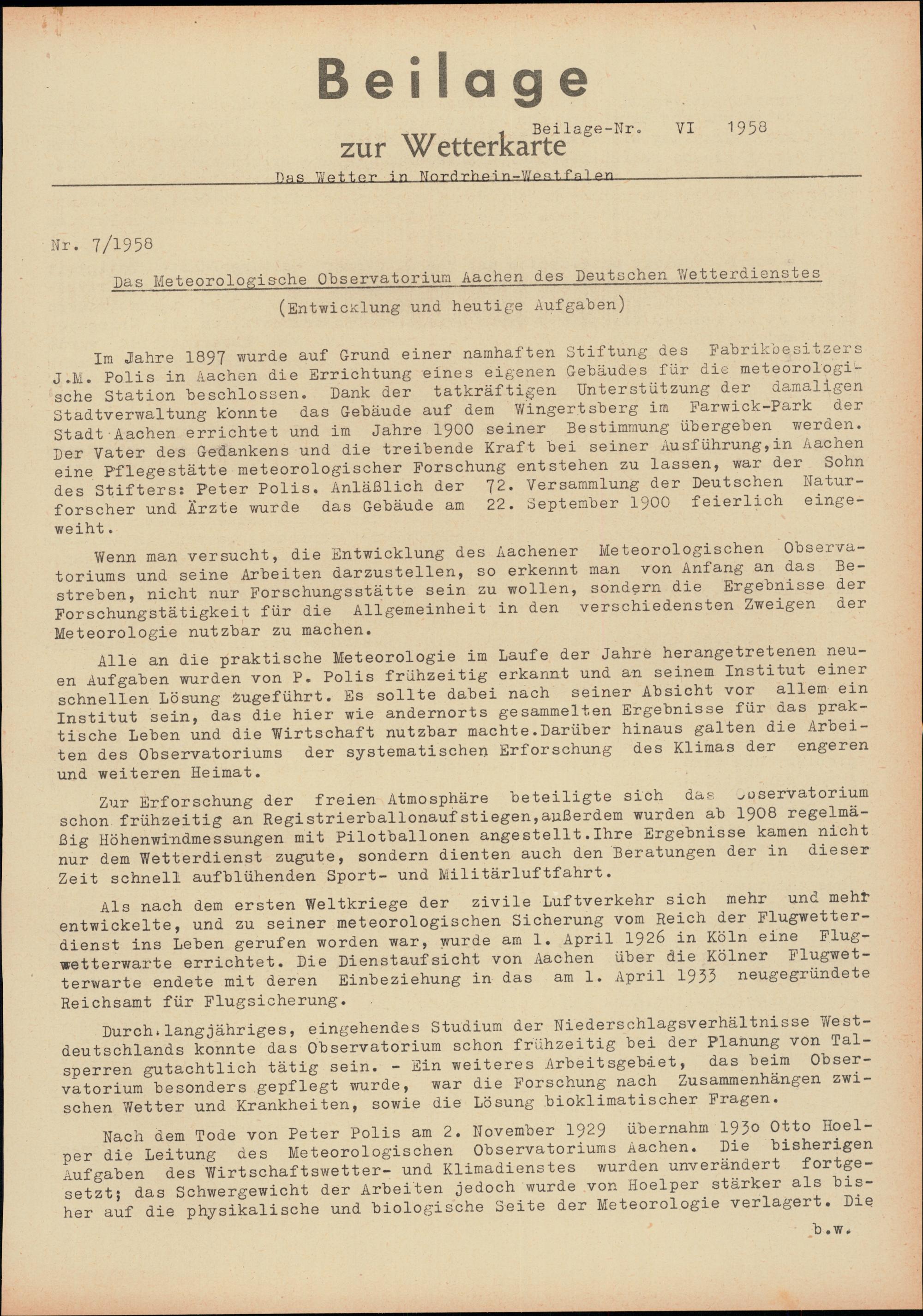 (1958) 7. Das Meteorologische Observatorium Aachen des DWD