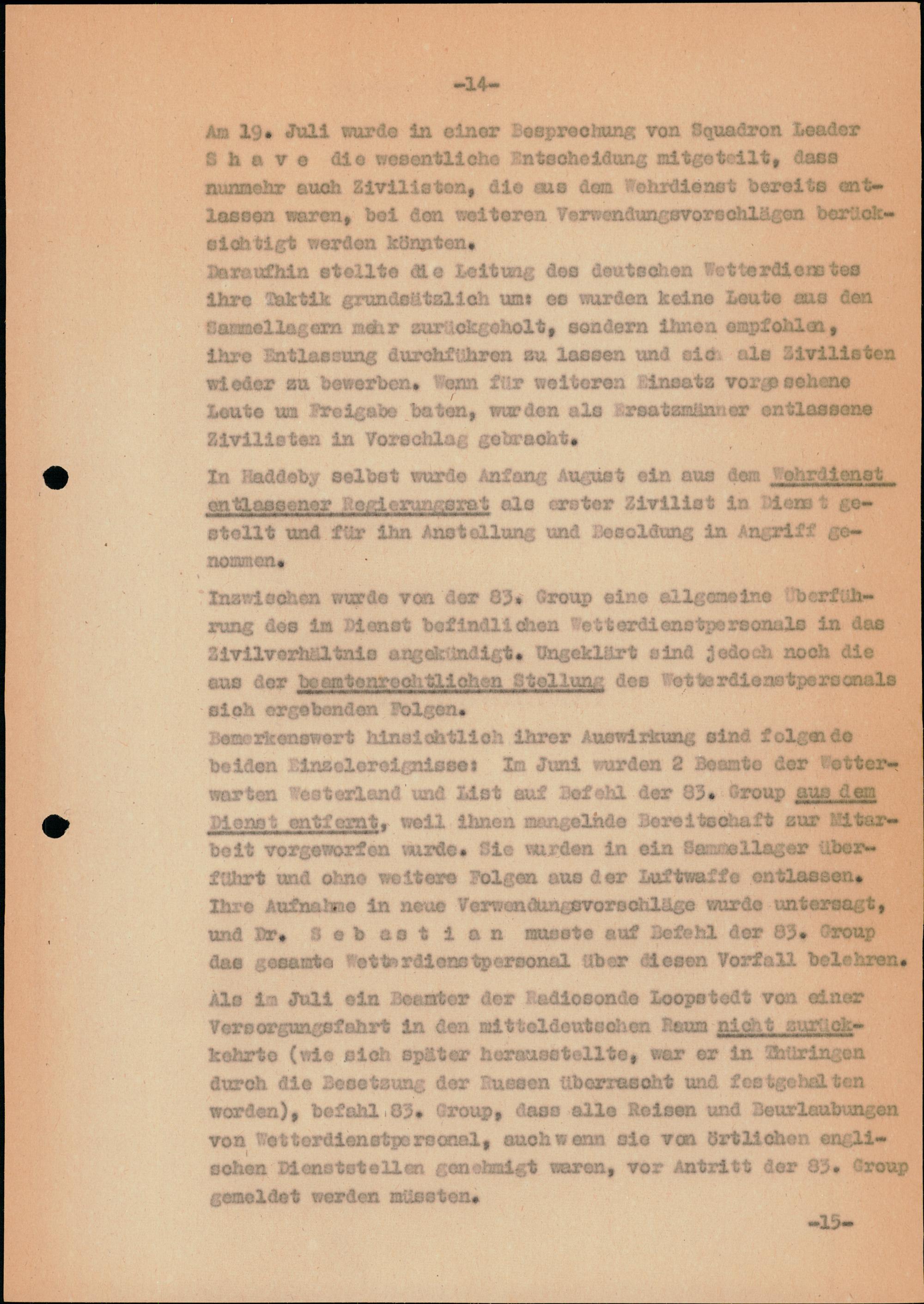 Bericht über den Wetterdienst der Luftflotte Reich von Mai bis August 1945 / Wetterdienstzentrale Haddeby