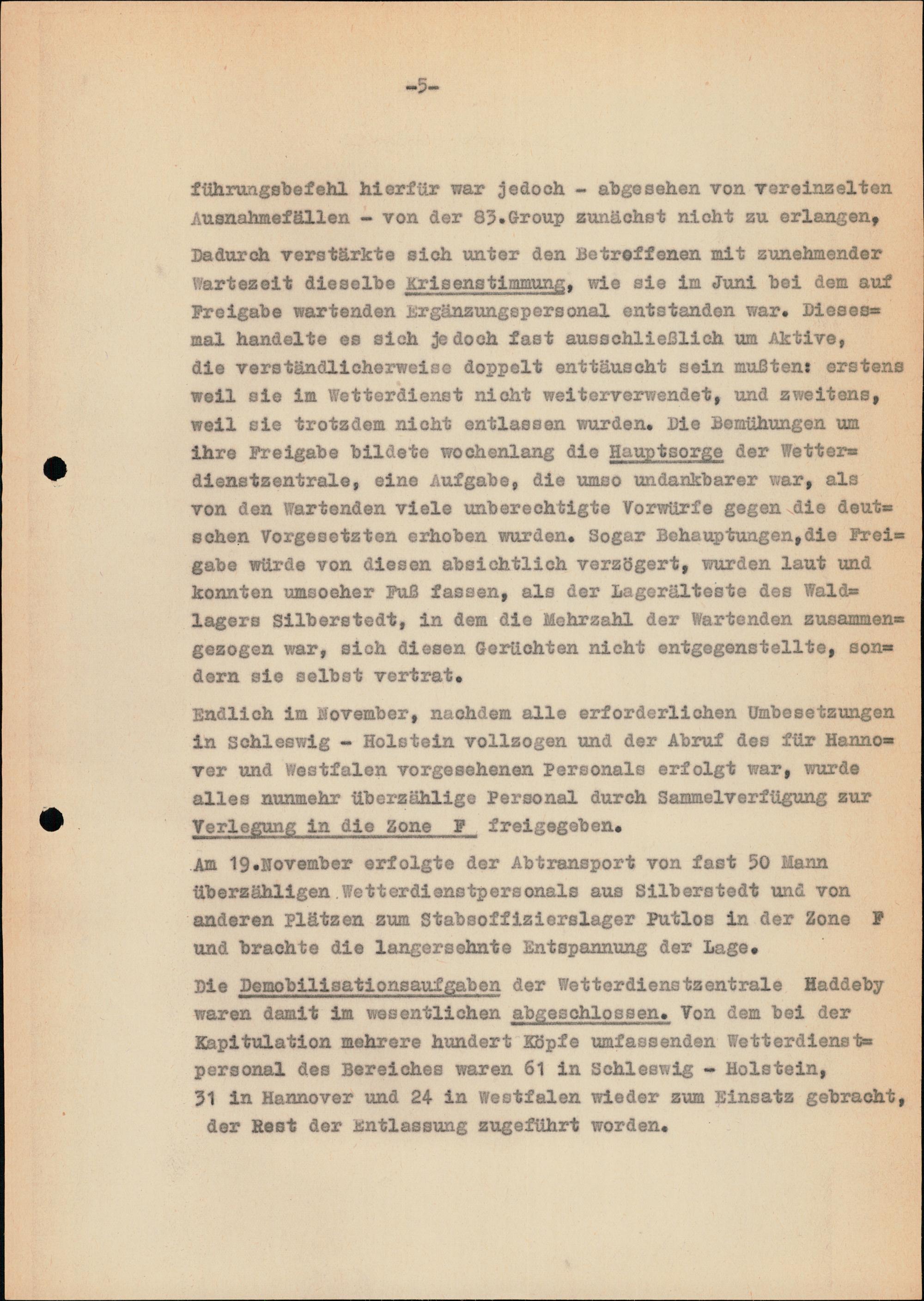 Bericht über den Wetterdienst im Bereich des Deutschen Arbeitskorps (Luft) III (Luftgau XI) von September 1945 bis Januar 1946 / Wetterdienstzentrale Haddeby
