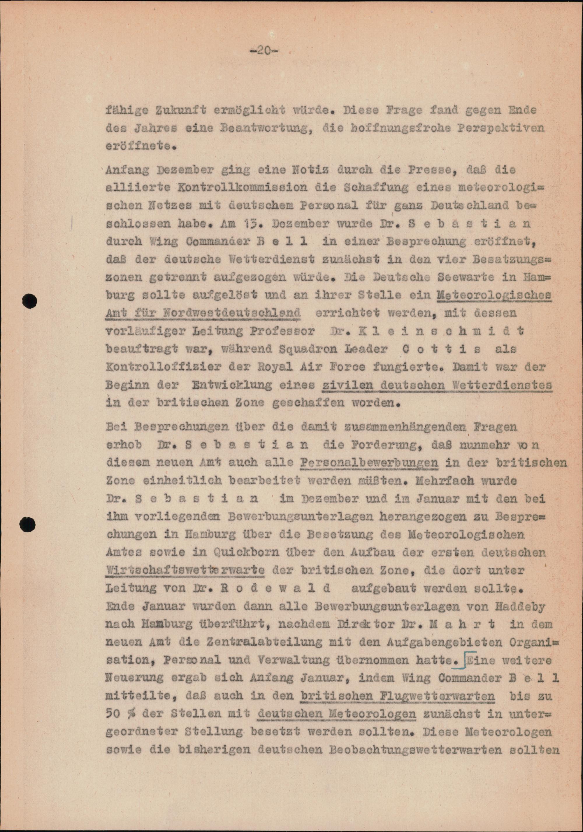 Bericht über den Wetterdienst im Bereich des Deutschen Arbeitskorps (Luft) III (Luftgau XI) von September 1945 bis Januar 1946 / Wetterdienstzentrale Haddeby