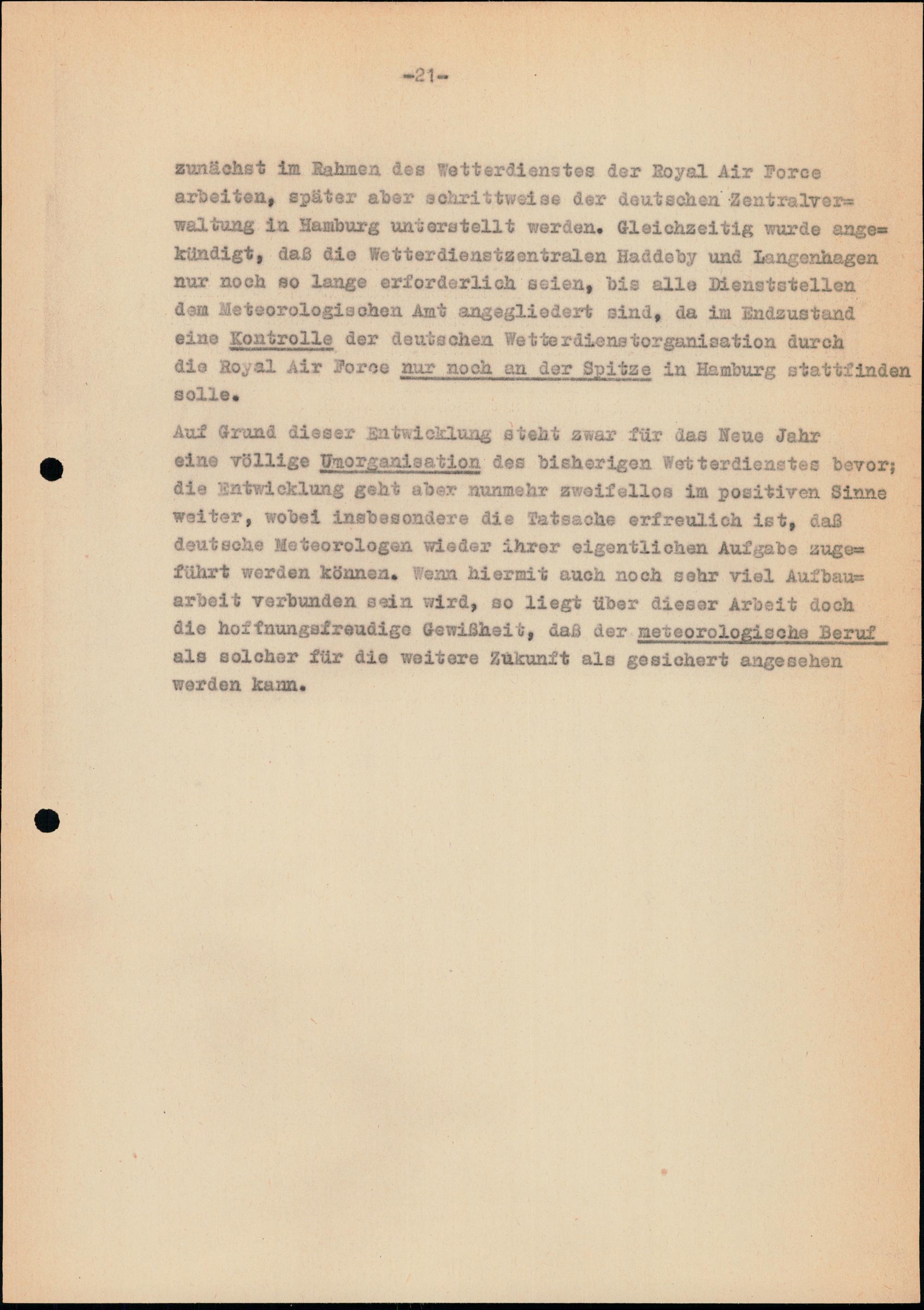 Bericht über den Wetterdienst im Bereich des Deutschen Arbeitskorps (Luft) III (Luftgau XI) von September 1945 bis Januar 1946 / Wetterdienstzentrale Haddeby