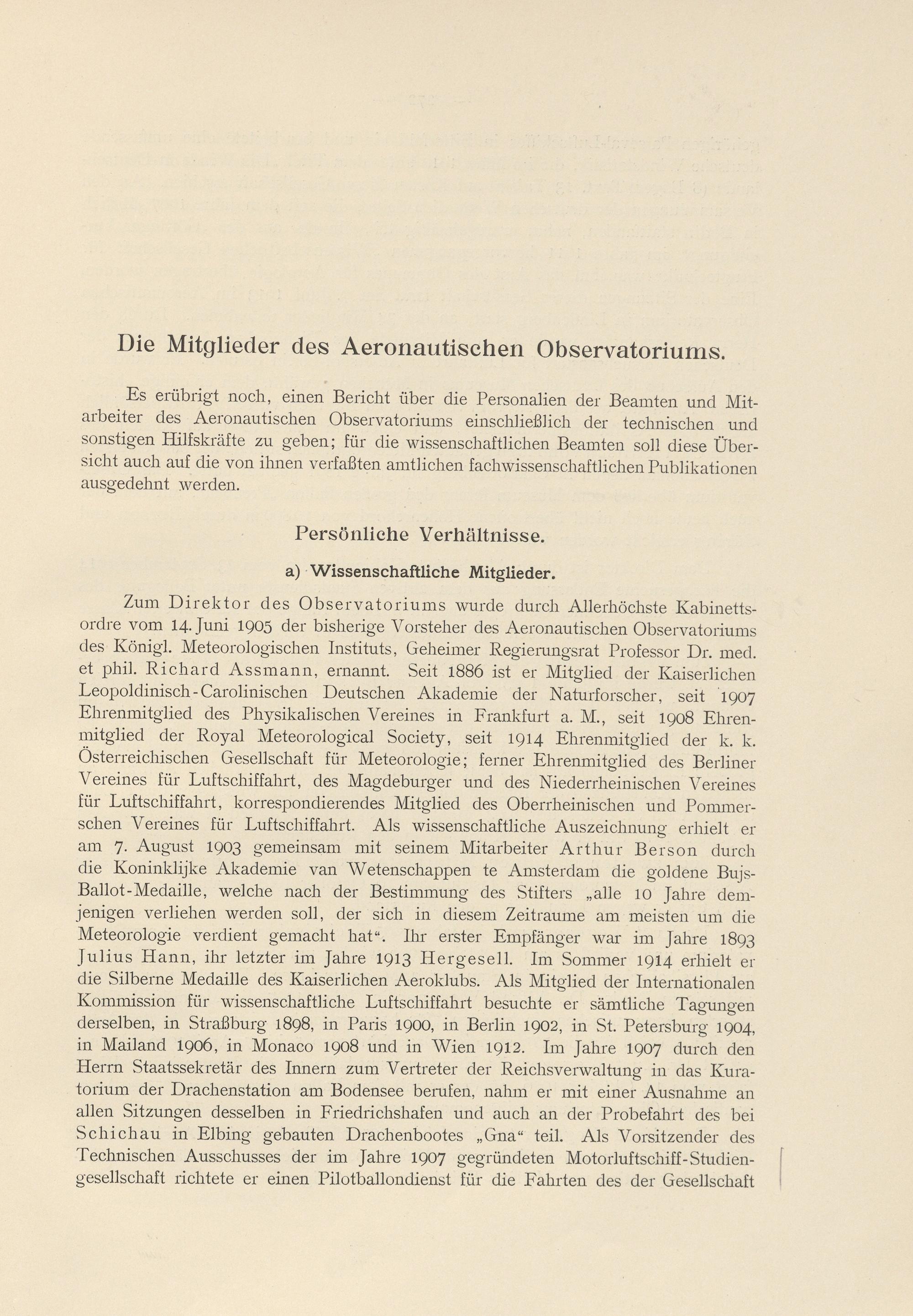 Aerologische Expeditionen des Observatoriums und seiner Beamten