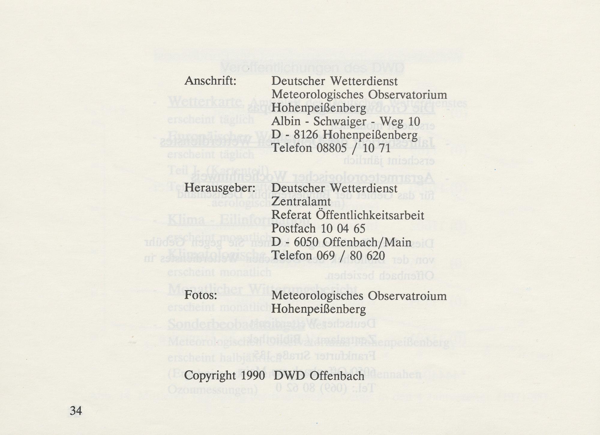 Meteorologisches Observatorium Hohenpeissenberg / Deutscher Wetterdienst, Zentralamt