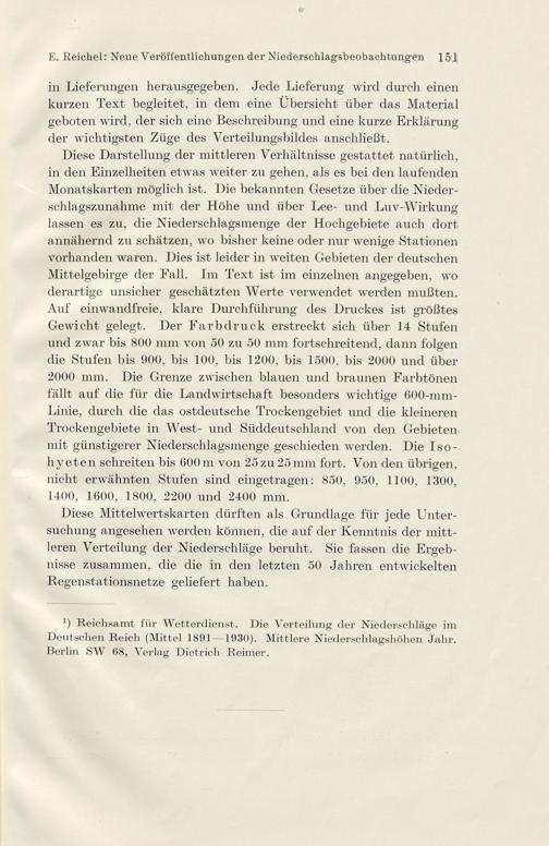 Neue Veröffentlichungen der Niederschlagsbeobachtungen durch das Reichsamt für Wetterdienst / von E. Reichel