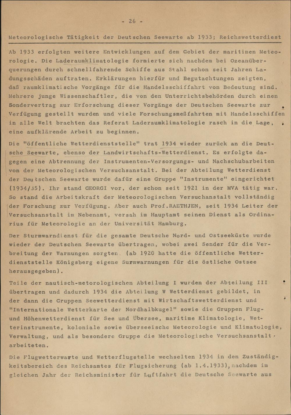 Vertiefung der Meteorologischen Dienste der Deutschen Seewarte ab 1926 bei Verkappung der Haushaltsmittel