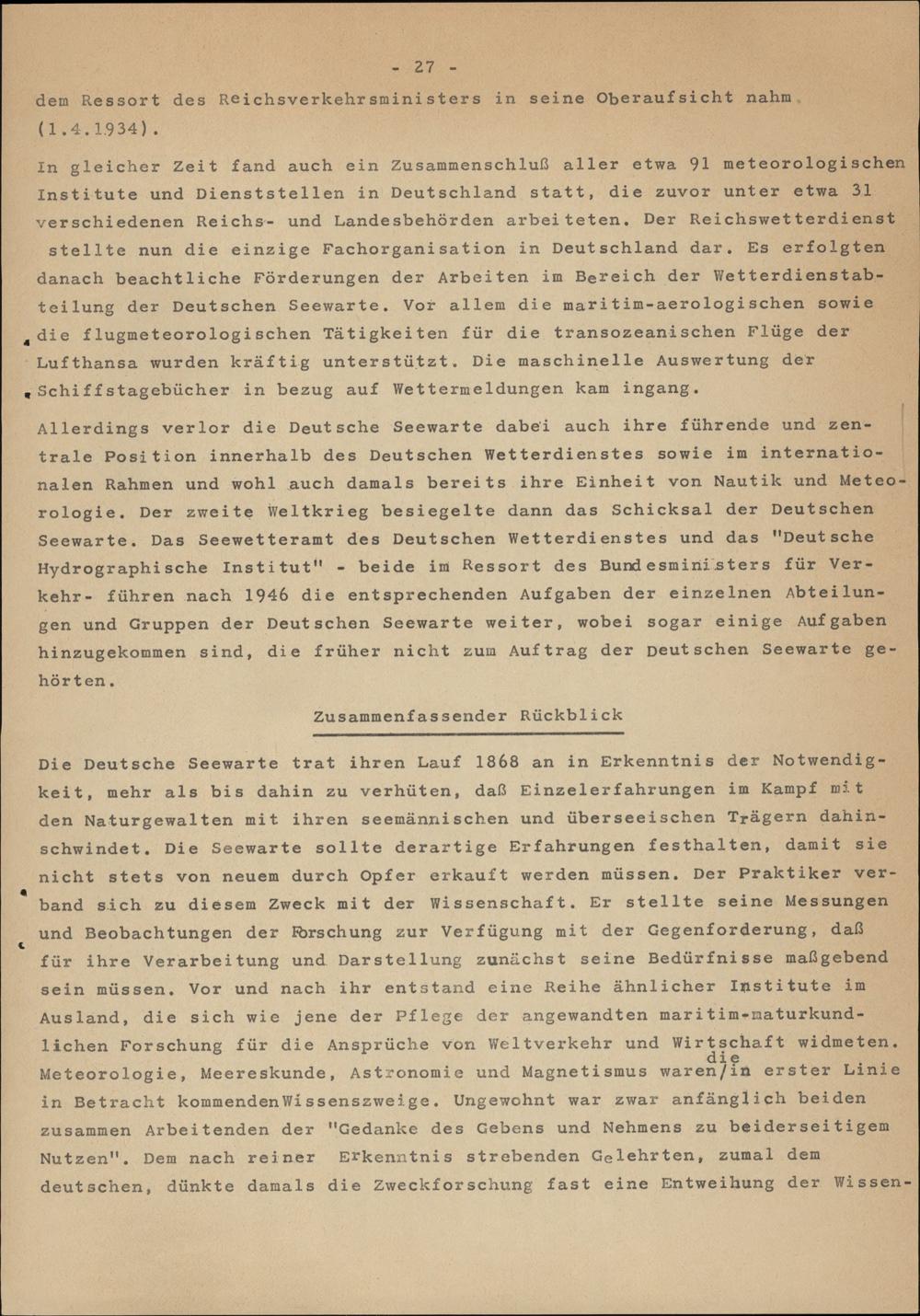 Meteorologie und Wetternachrichtendienst in der Deutschen Seewarte nach 1918
