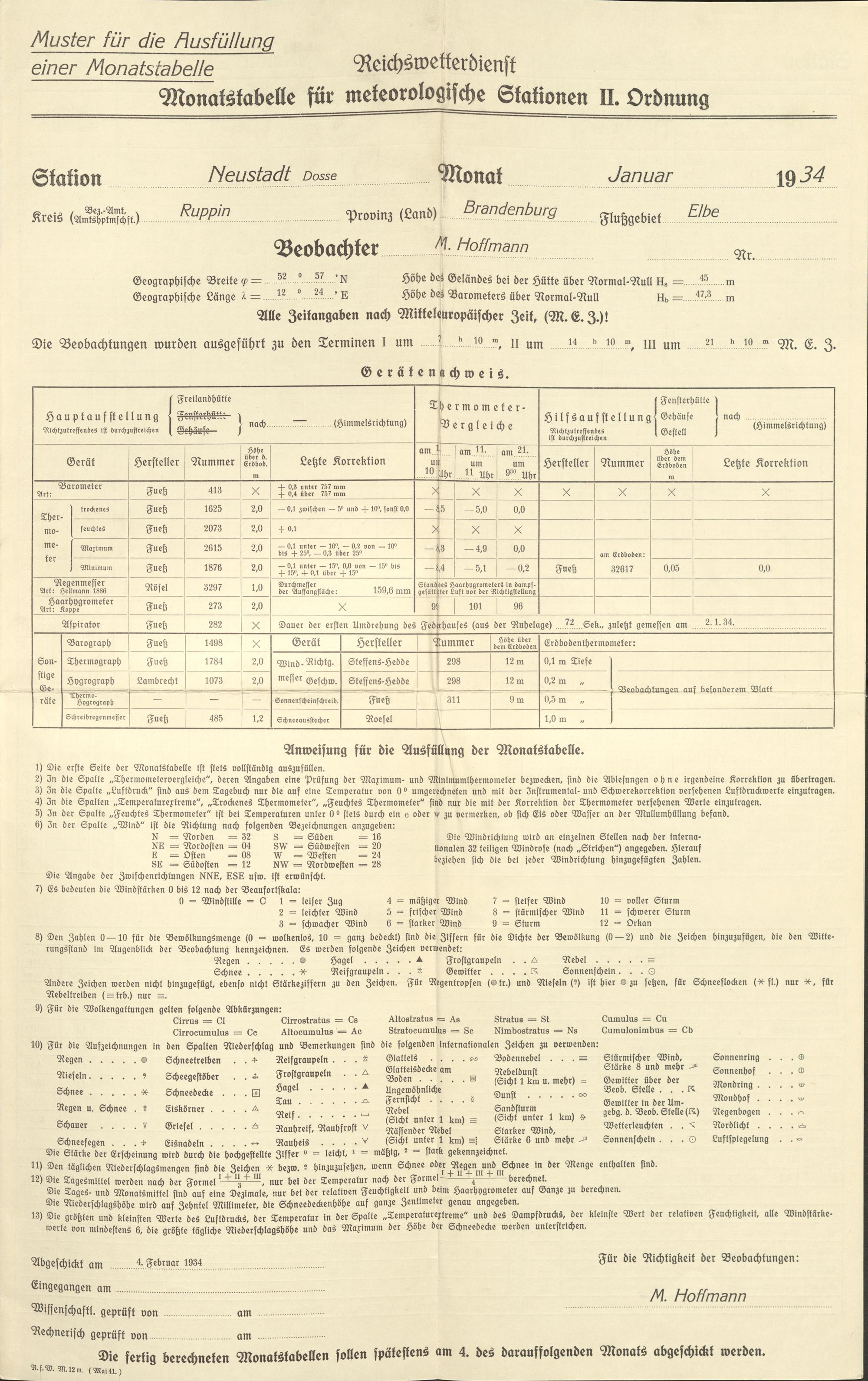 Anleitung für die Beobachter an den Wetterbeobachtungsstellen des Reichswetterdienstes : Ausgabe für den Klimadienst ; allgemeiner Teil für die Stationen I. - III. Ordnung / Reichsamt für Wetterdienst