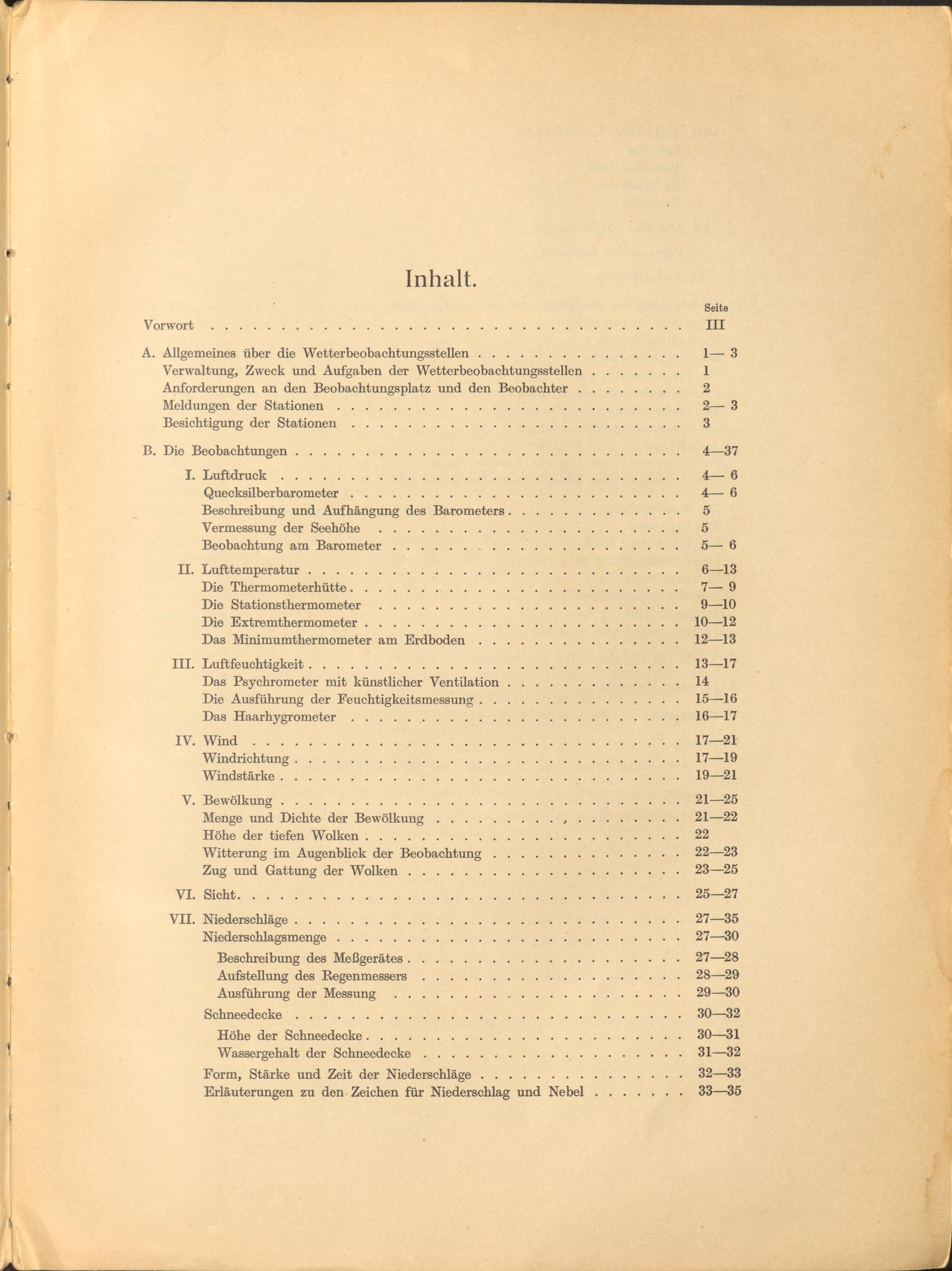 Anleitung für die Beobachter an den Wetterbeobachtungsstellen des Reichswetterdienstes : Ausgabe für den Klimadienst ; allgemeiner Teil für die Stationen I. - III. Ordnung / Reichsamt für Wetterdienst