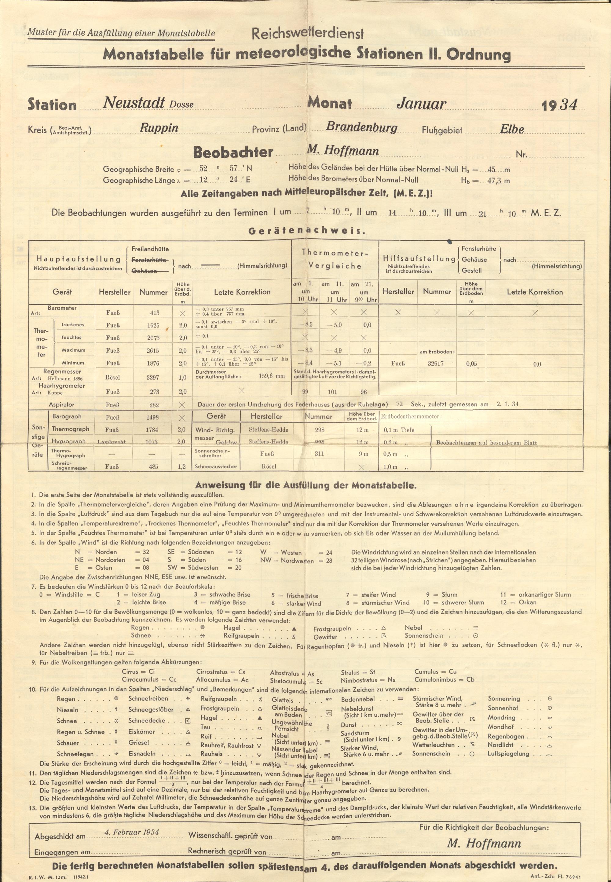 Anleitung für die Beobachter an den Wetterbeobachtungsstellen des Reichswetterdienstes : Ausgabe für den Klimadienst ; allgemeiner Teil für die Stationen I. - III. Ordnung / Reichsamt für Wetterdienst