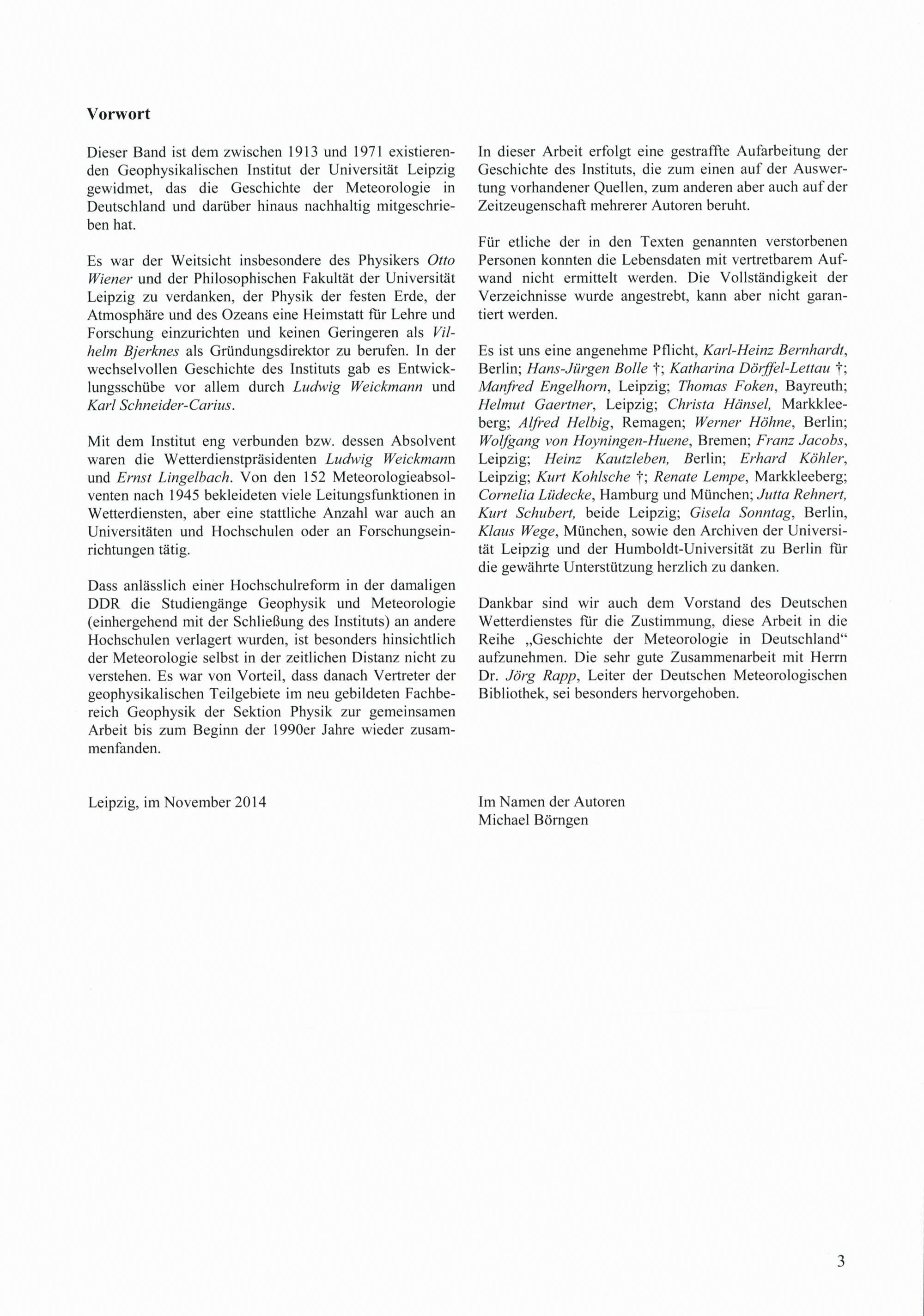Das Geophysikalische Institut der Universität Leipzig : aus Anlass der 100. Wiederkehr des Gründungsjahres / [Deutscher Wetterdienst, DWD]. Von Michael Börngen ... Mit Beitr. von H.-J. Brosin ...