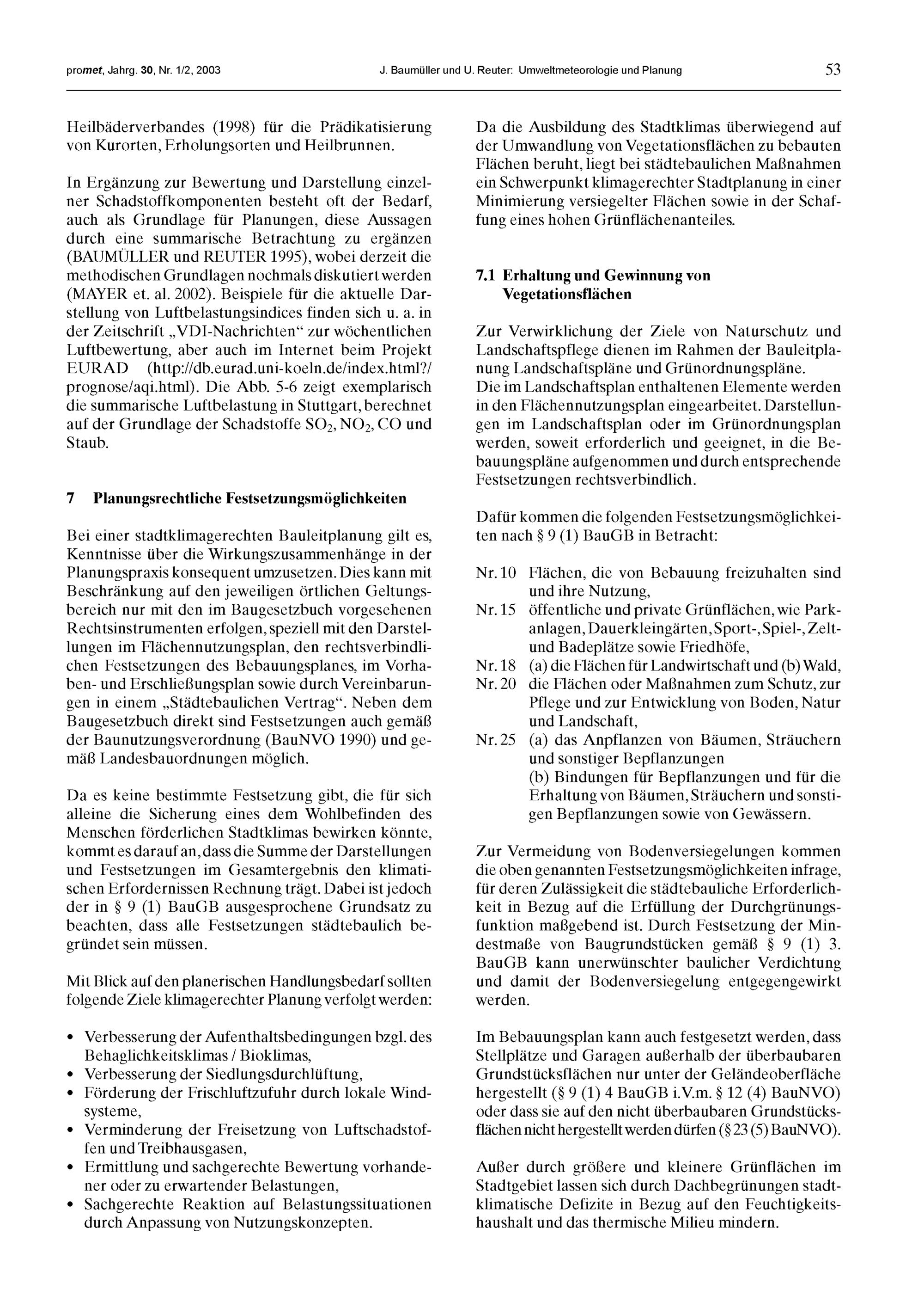 6. H. Mayer, A. Matzarakis: Zukunftsperspektiven der Umweltmeteorologie
