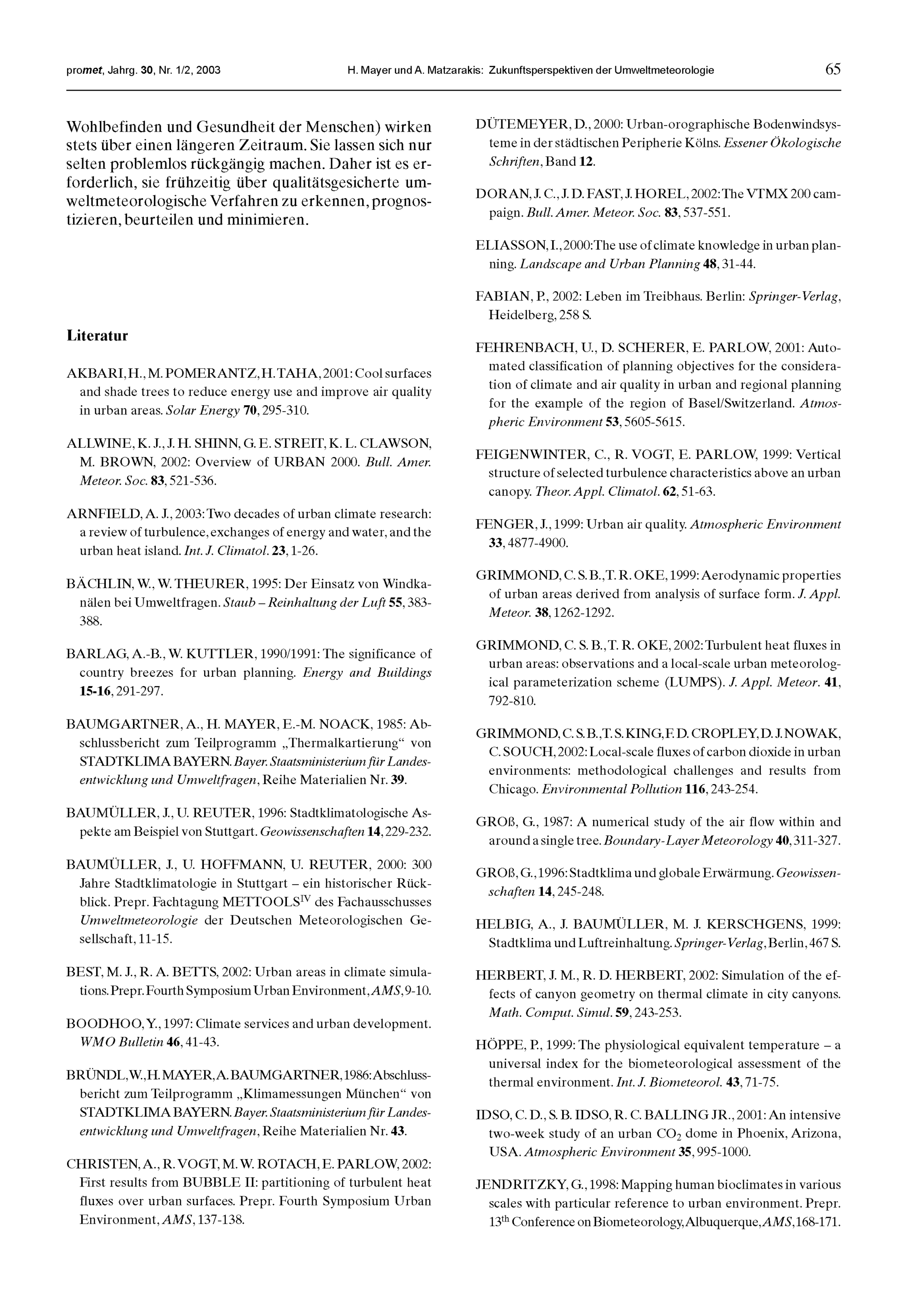 6. H. Mayer, A. Matzarakis: Zukunftsperspektiven der Umweltmeteorologie