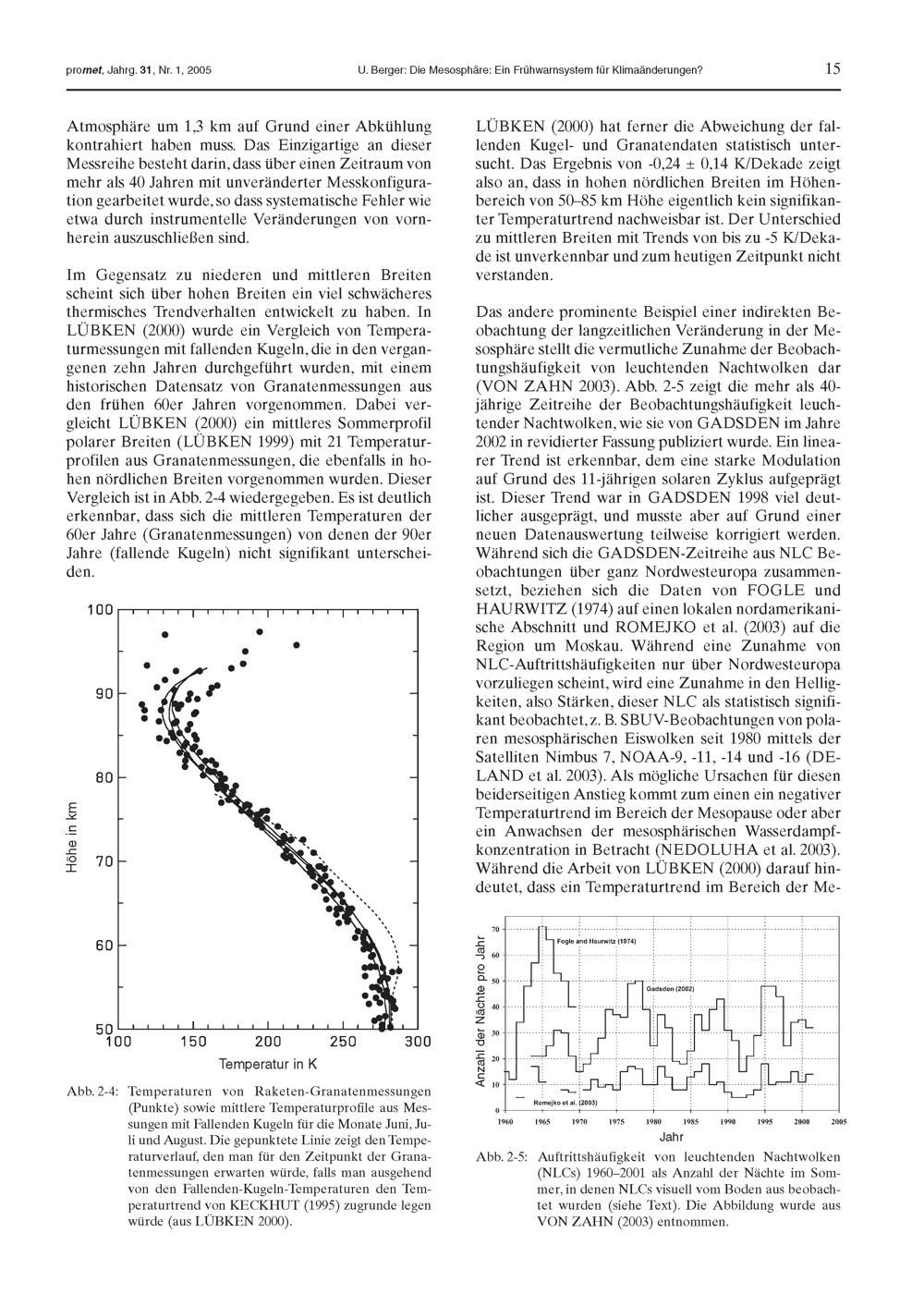 2. U. Berger: Die Mesosphäre: Ein Frühwarnsystem für Klimaänderungen?